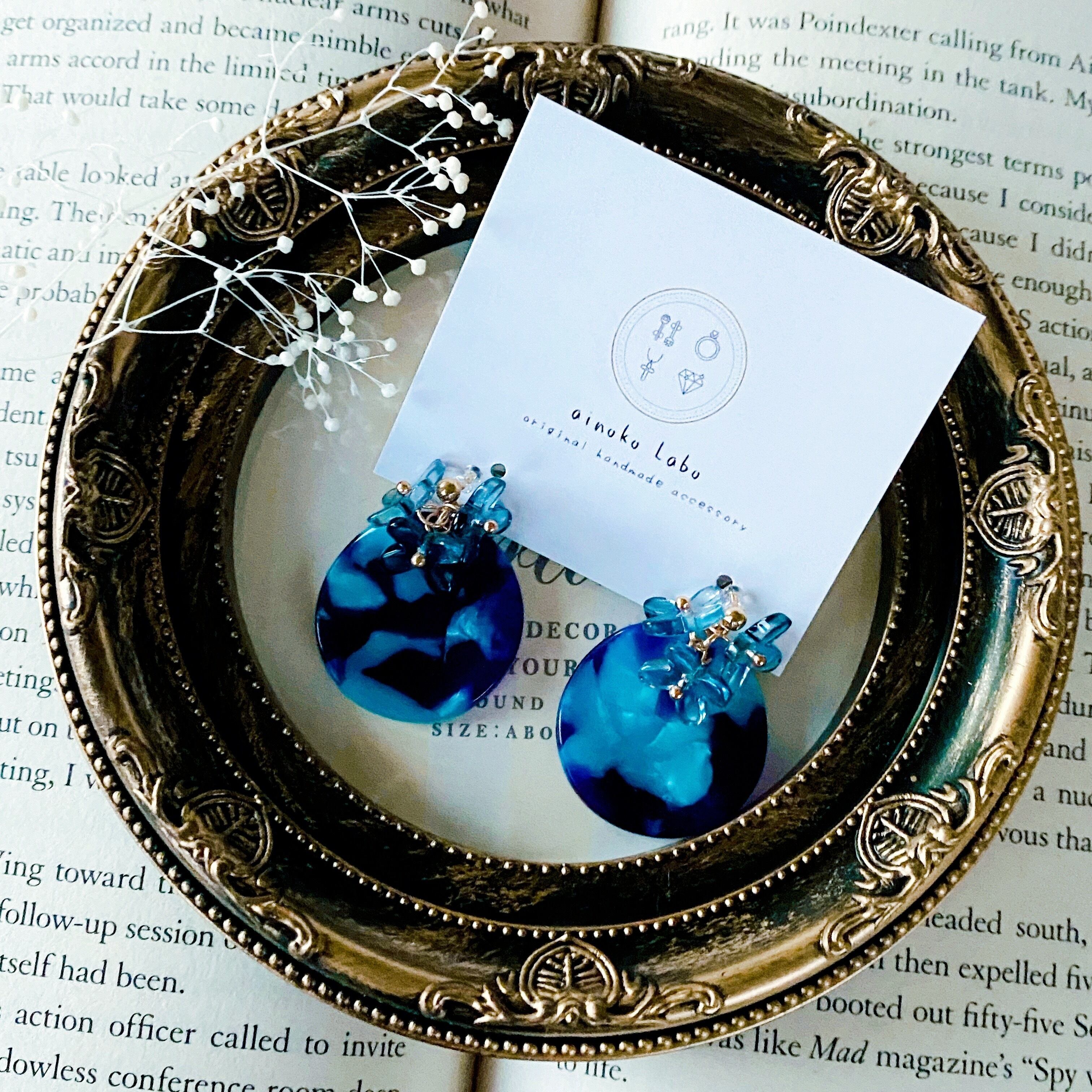 ✳︎ブルー お花と タイダイ 大人お洒落 ノンホールピアス✳︎