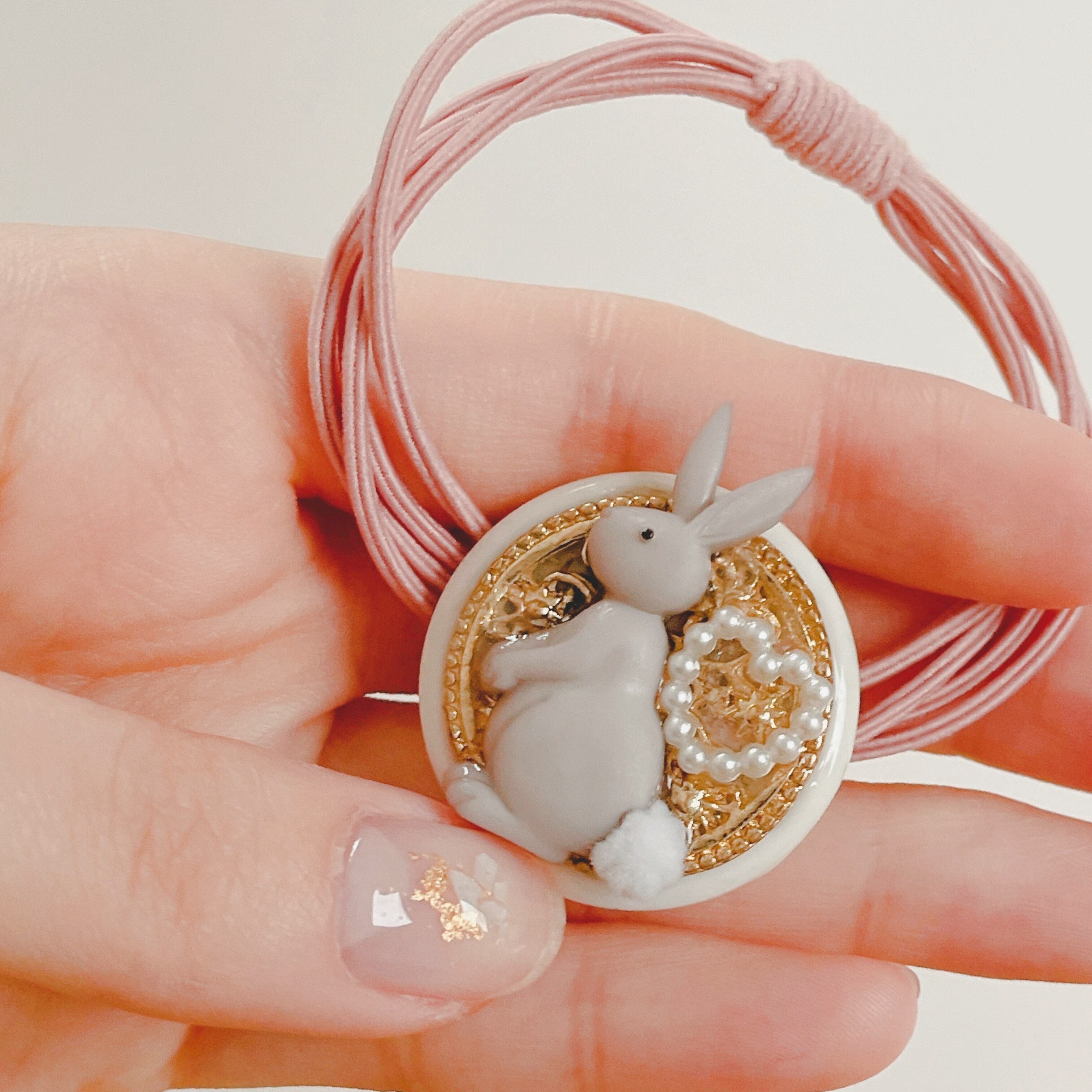 ミルキーピンクのヘアゴムを