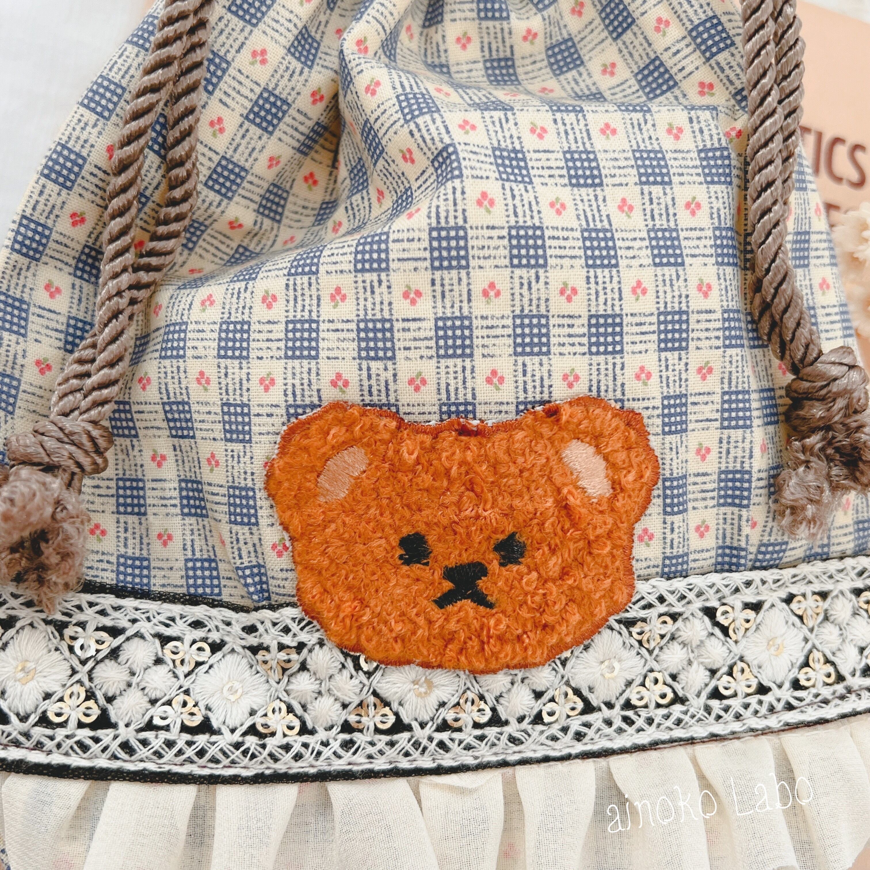 ✳︎ ちいさなさくらんぼチェック くまさん巾着 ✳︎