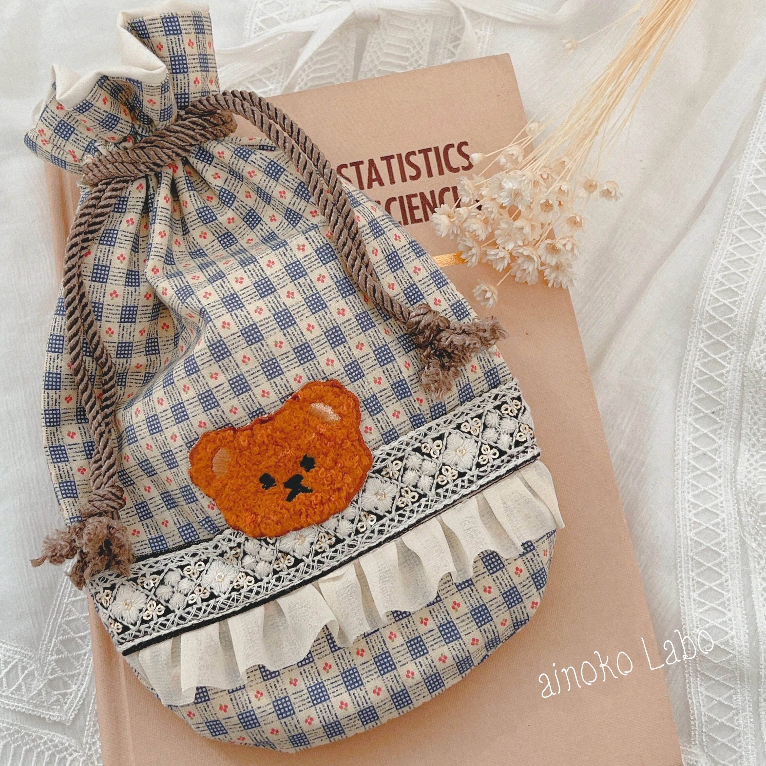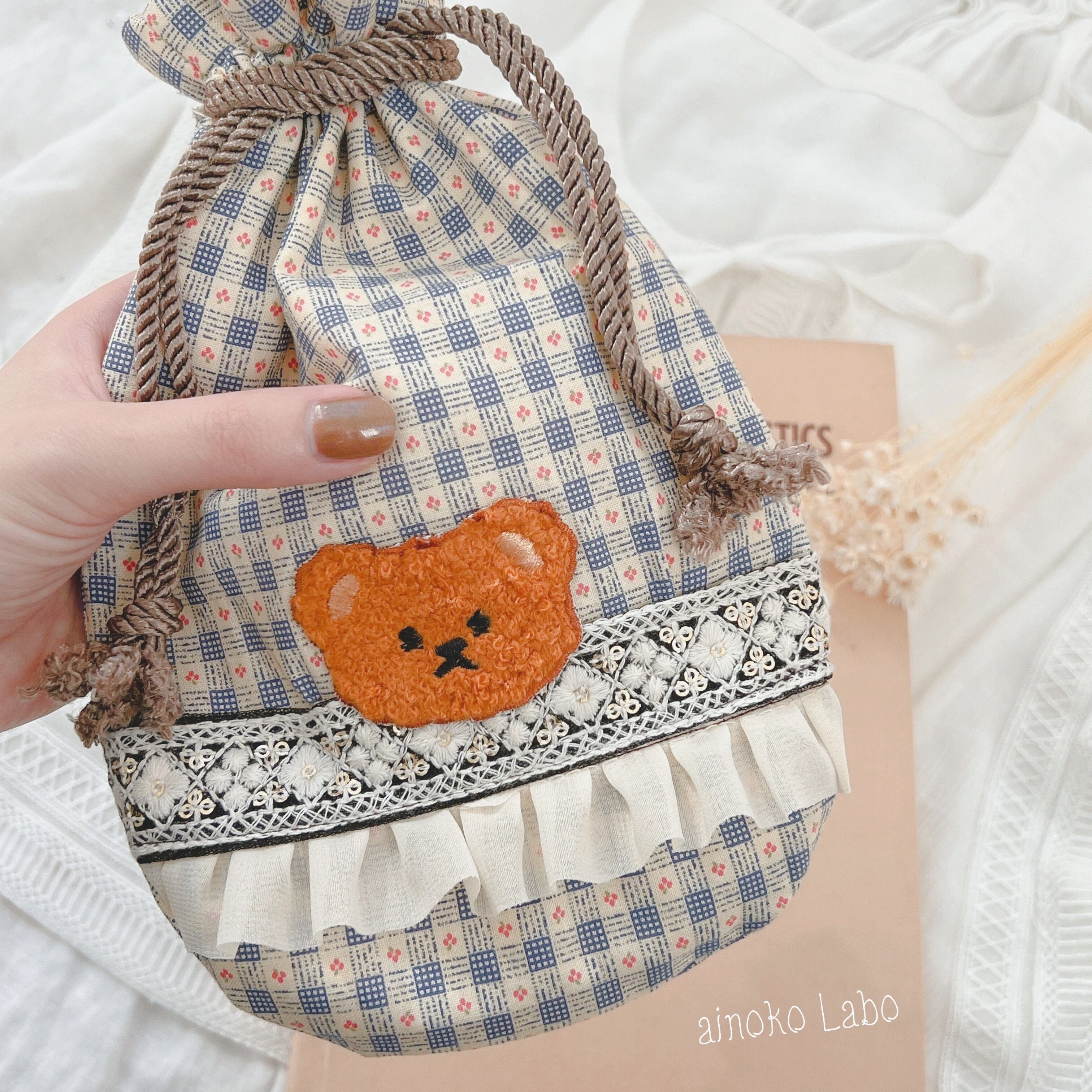 ふわふわくまさんの巾着を製作いたしました♡*̣̩⋆