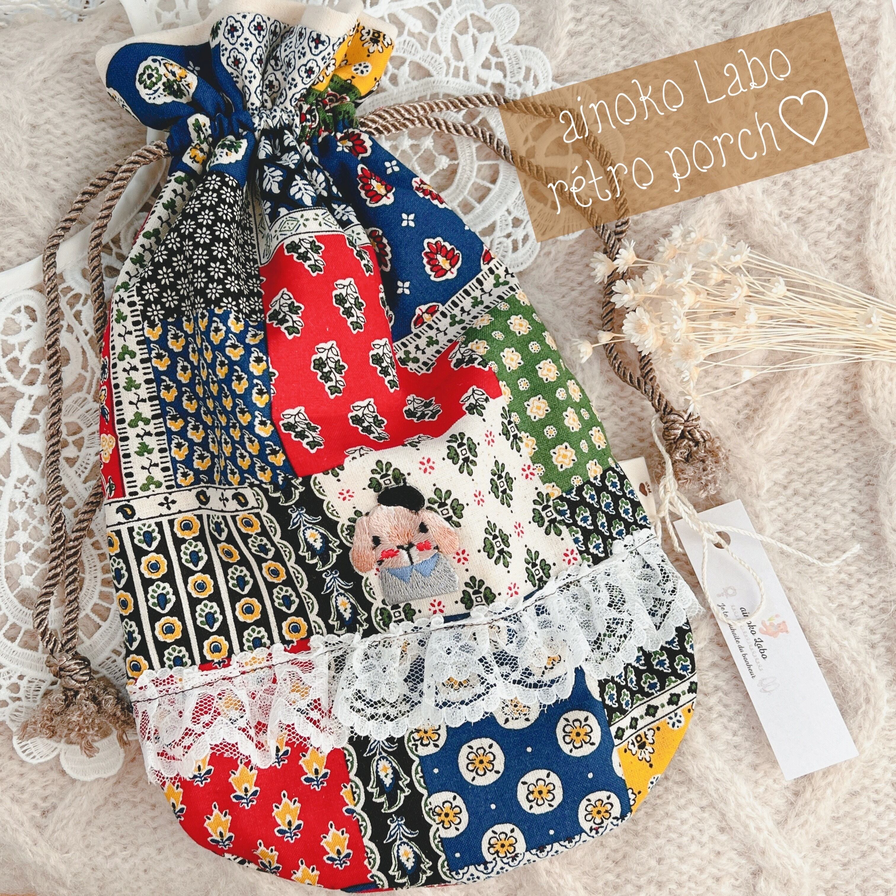 ✳︎ うさぎさん刺繍 アンティークレトロ巾着 ✳︎