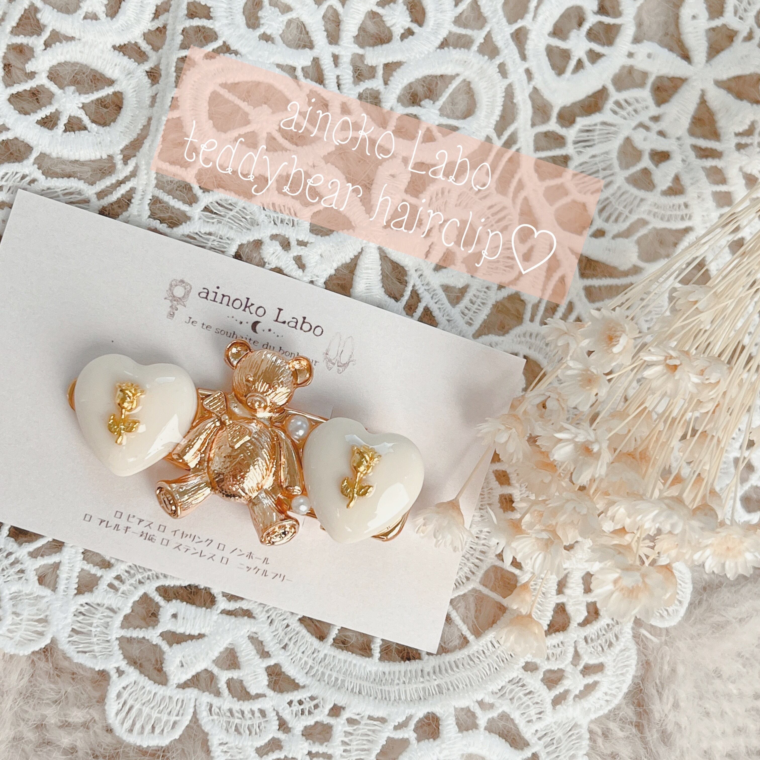✳︎ teddybearとハート アンティーク ヘアクリップ ✳︎