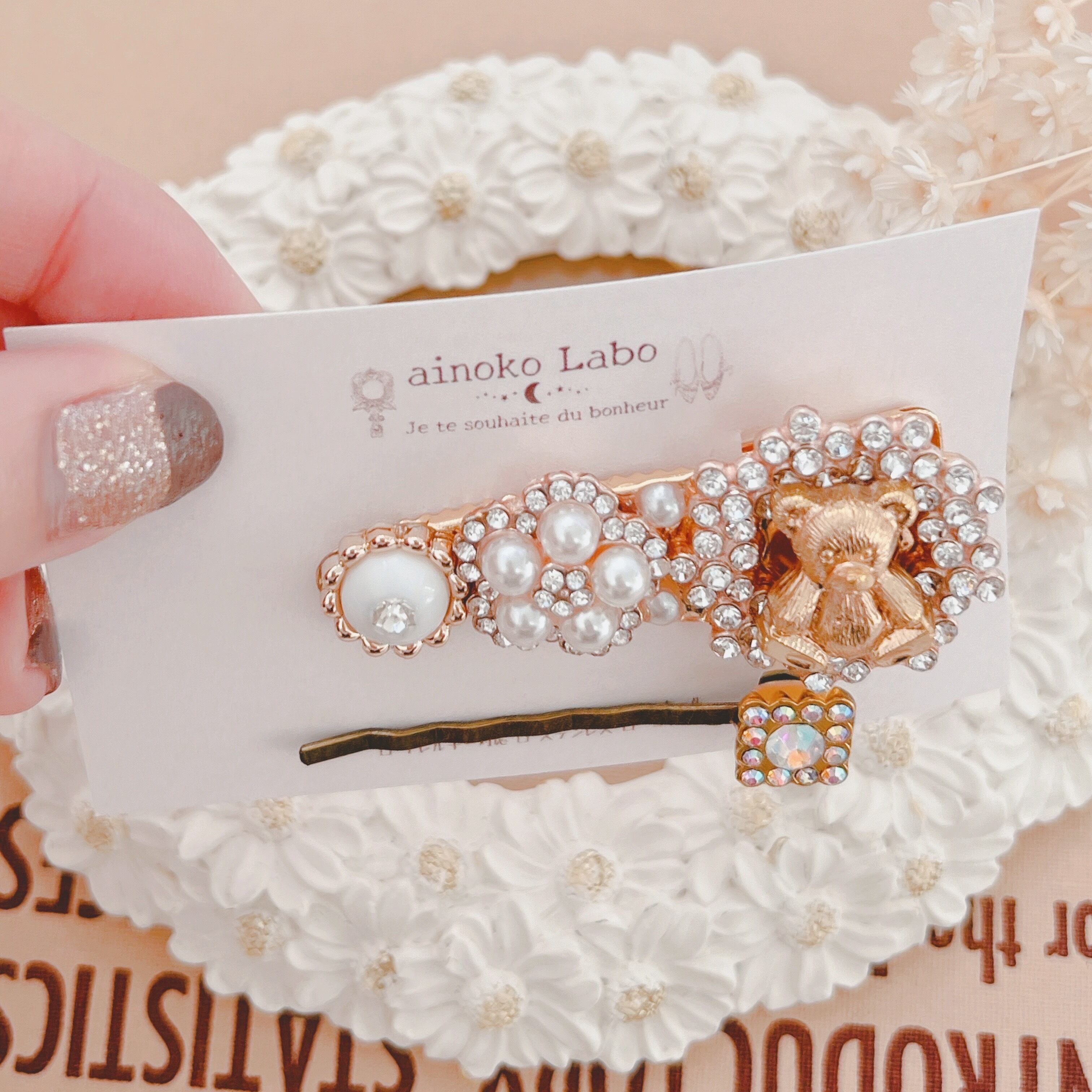 ✳︎ くまさん きらきらビジューたっぷり アンティーク ヘアクリップ ✳︎