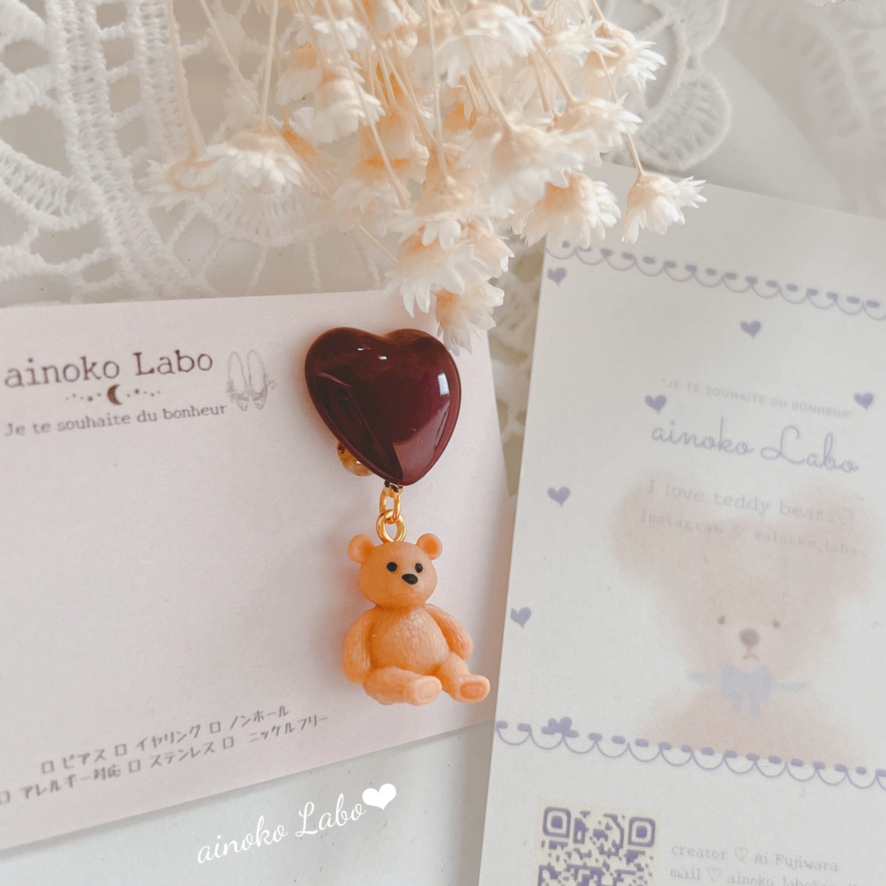 ✳︎ ミニチュアくまさん アンティークレッド ハート イヤリング ✳︎