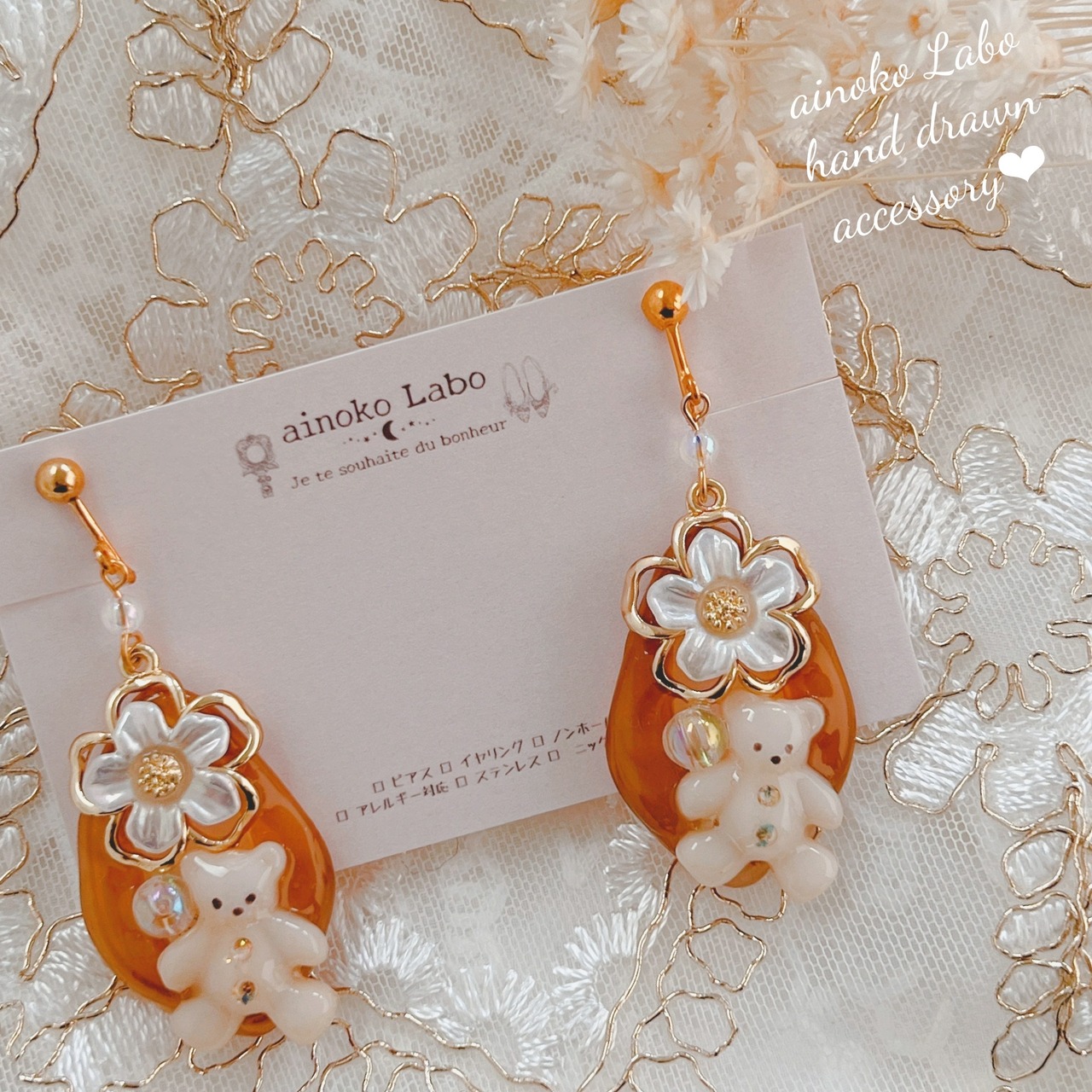 かわいらしいイヤリングを製作しました♡*̣̩⋆