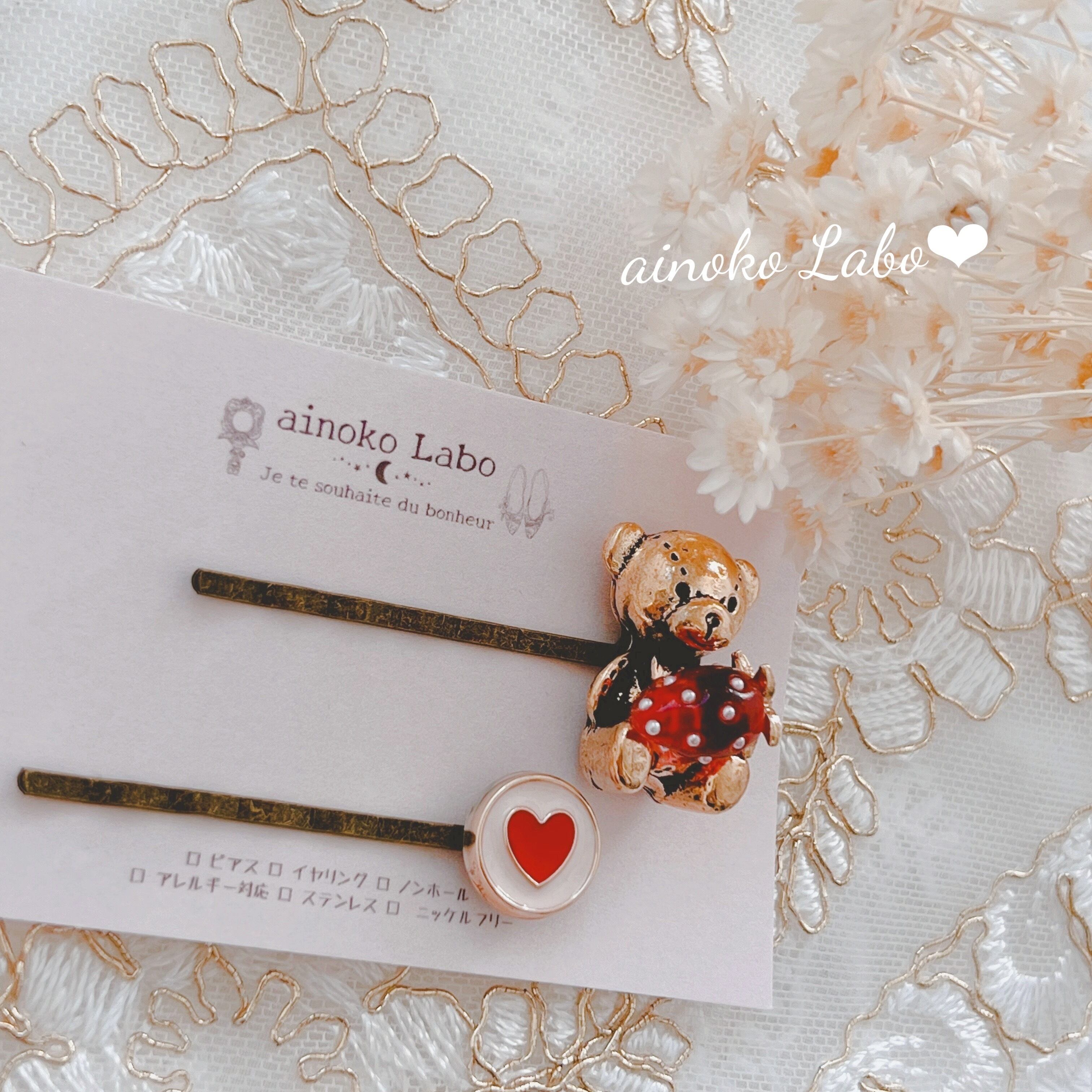 ✳︎ くまさんといちご ハート ヘアピンset ✳︎
