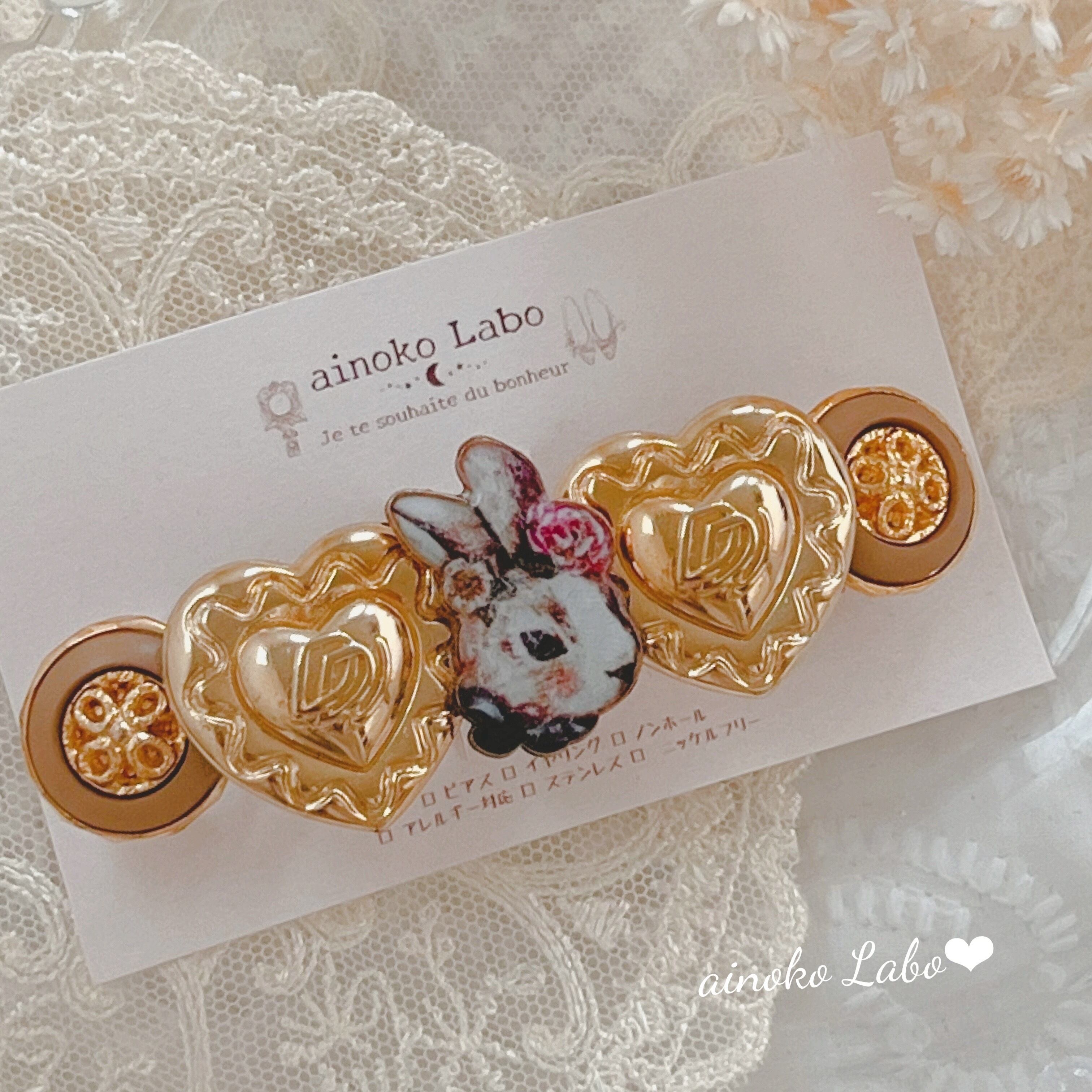 ✳︎ antiqueうさぎさんとヴィンテージボタン ハート バレッタ ✳︎