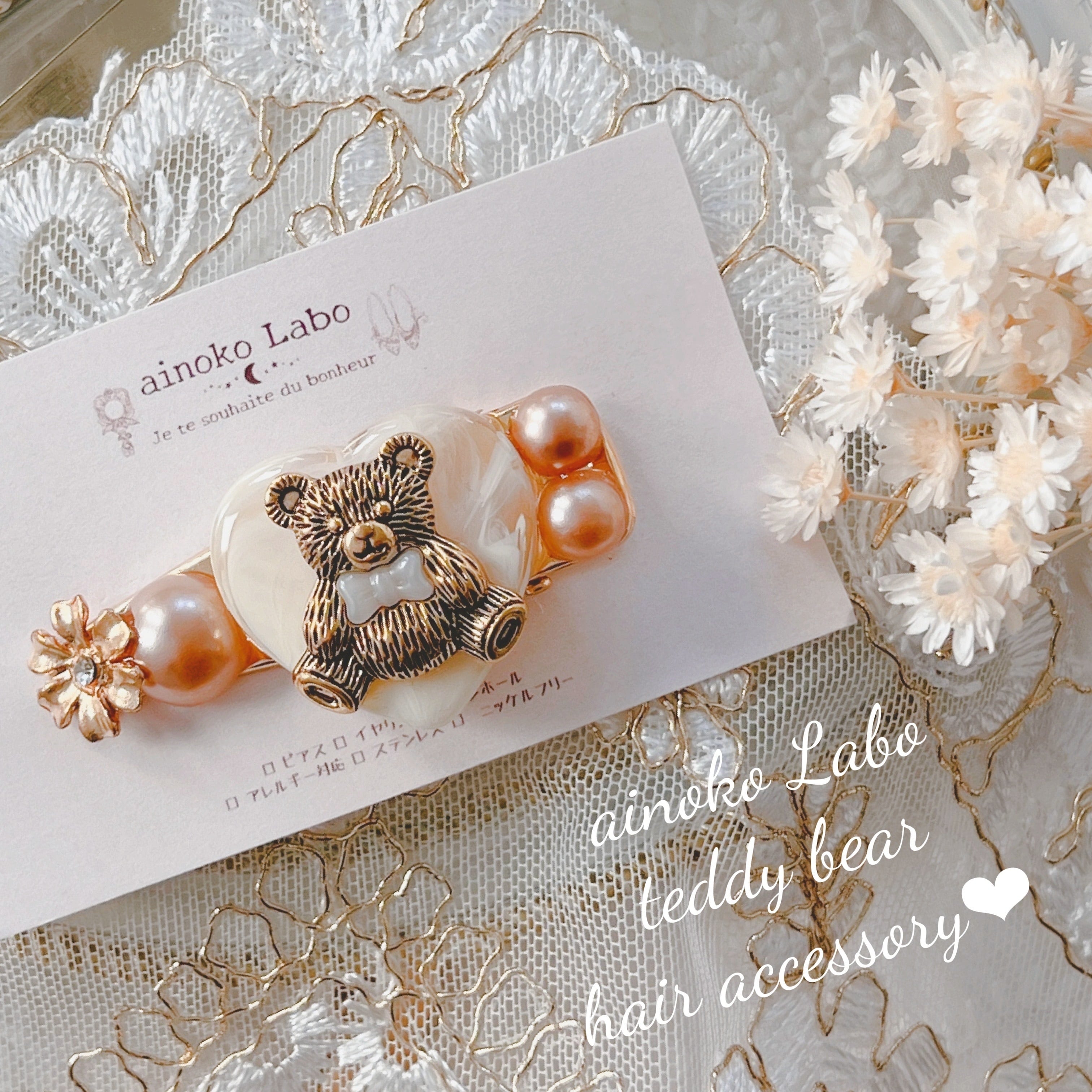 ✳︎ アンティークくまさん ハートとお花のgirly ヘアクリップ ✳︎