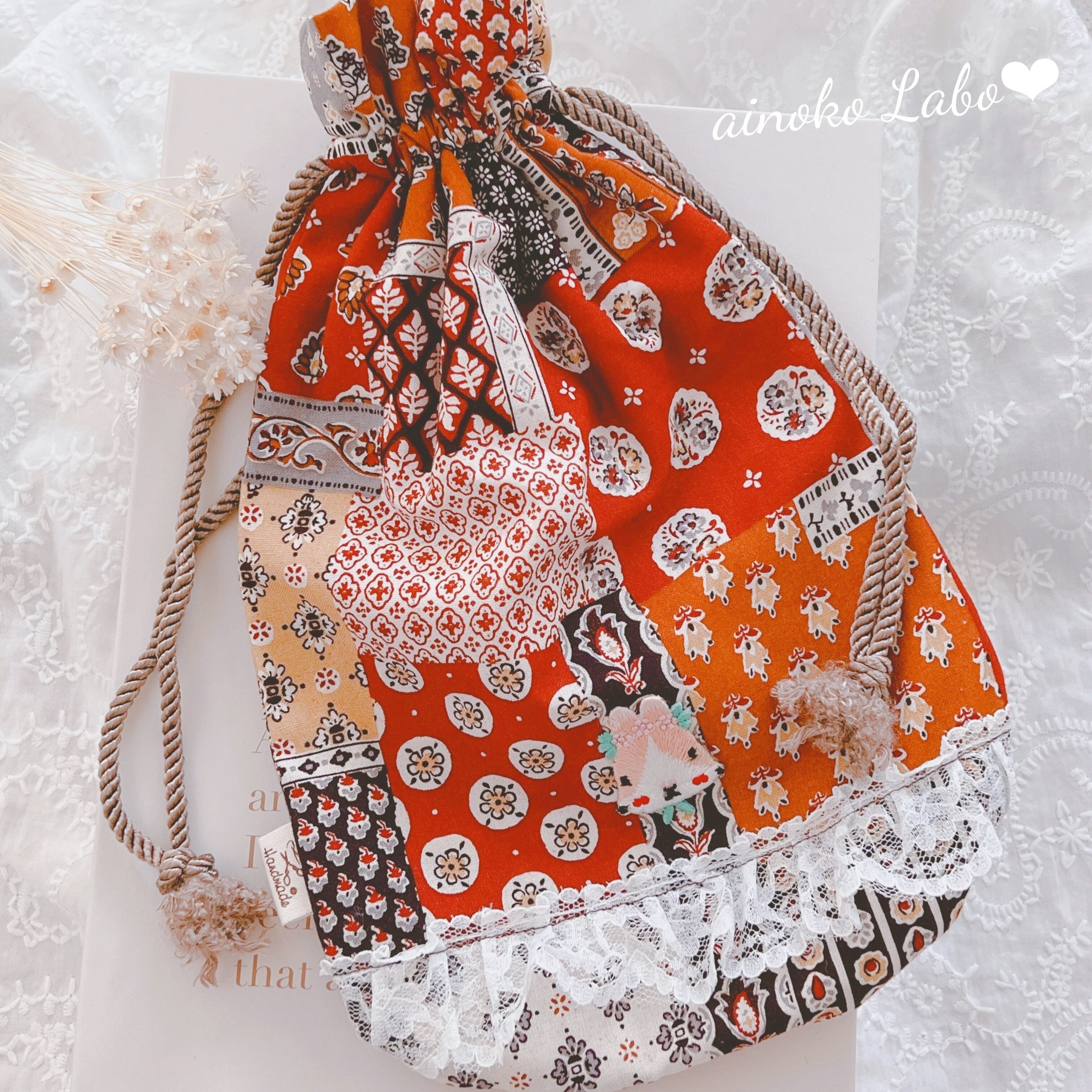 大きめの巾着を製作いたしました♡*̣̩⋆