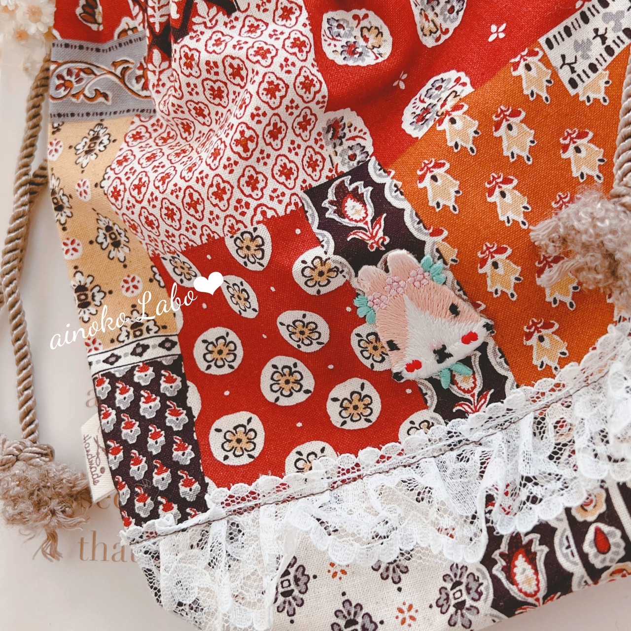 ✳︎ うさぎさん刺繍 アンティークレトロ巾着 ✳︎