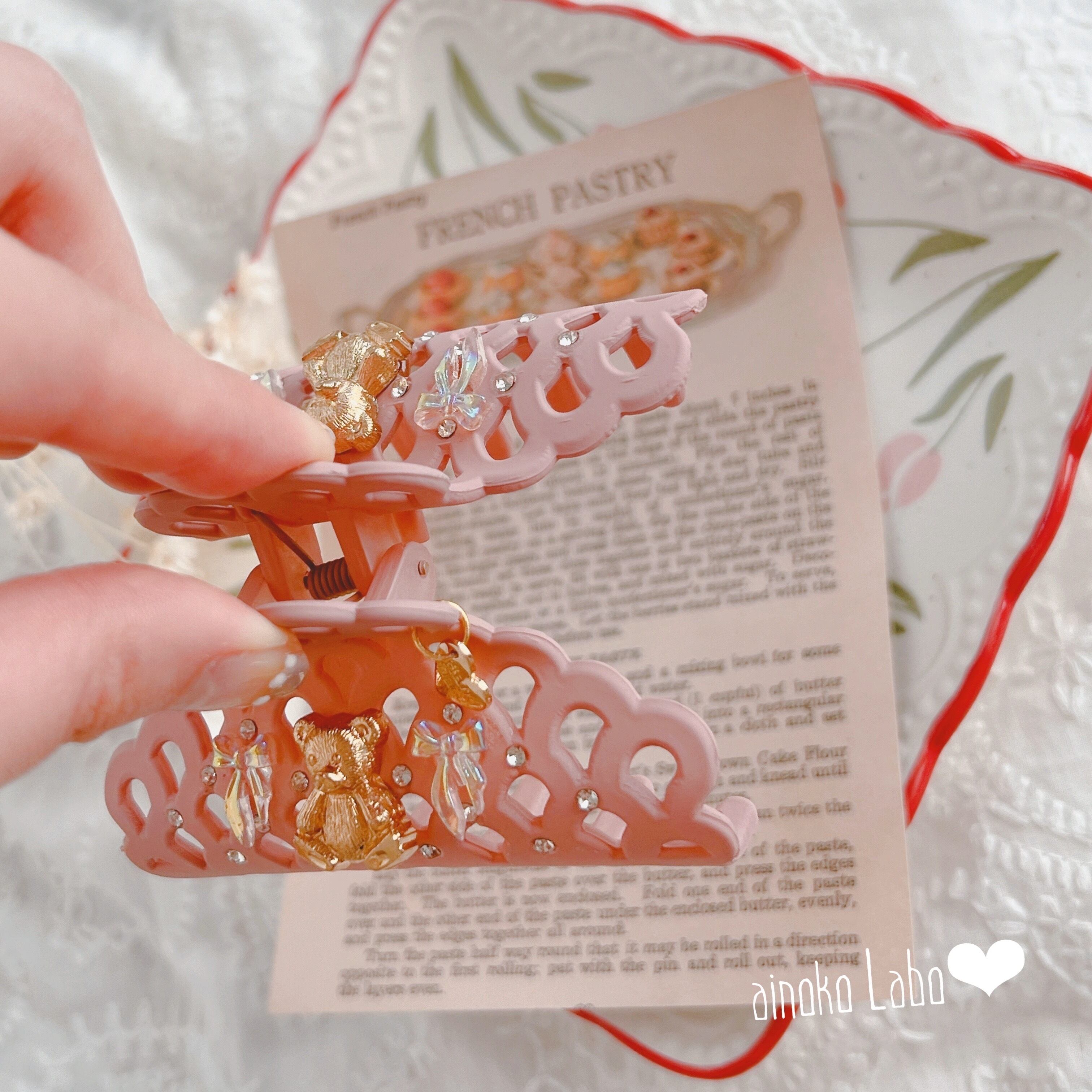 ✳︎ girlyくまさん ミルキーピンク リボン バンズクリップ ✳︎