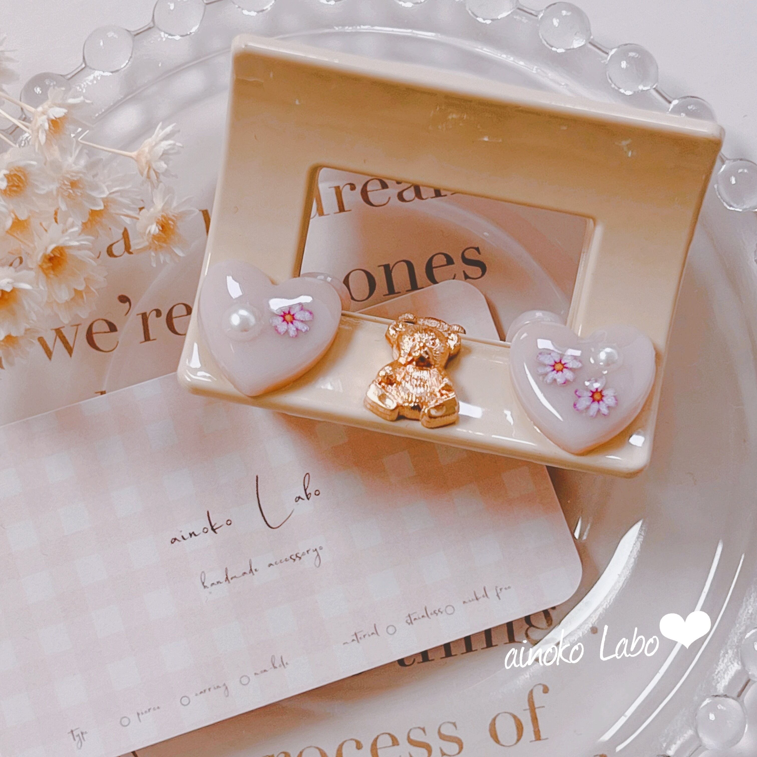 ちいさなお花を閉じ込めたハートパーツを使用し