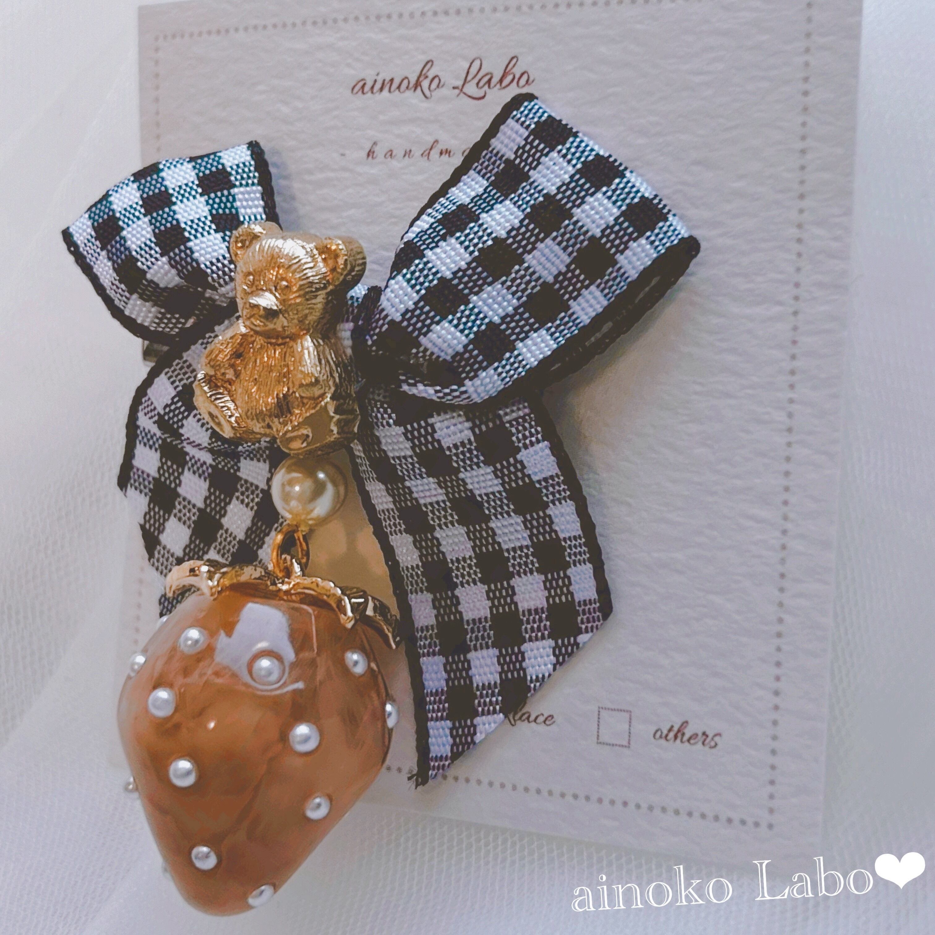 ✳︎ girlyギンガムチェック くまさん ミニヘアクリップ ✳︎