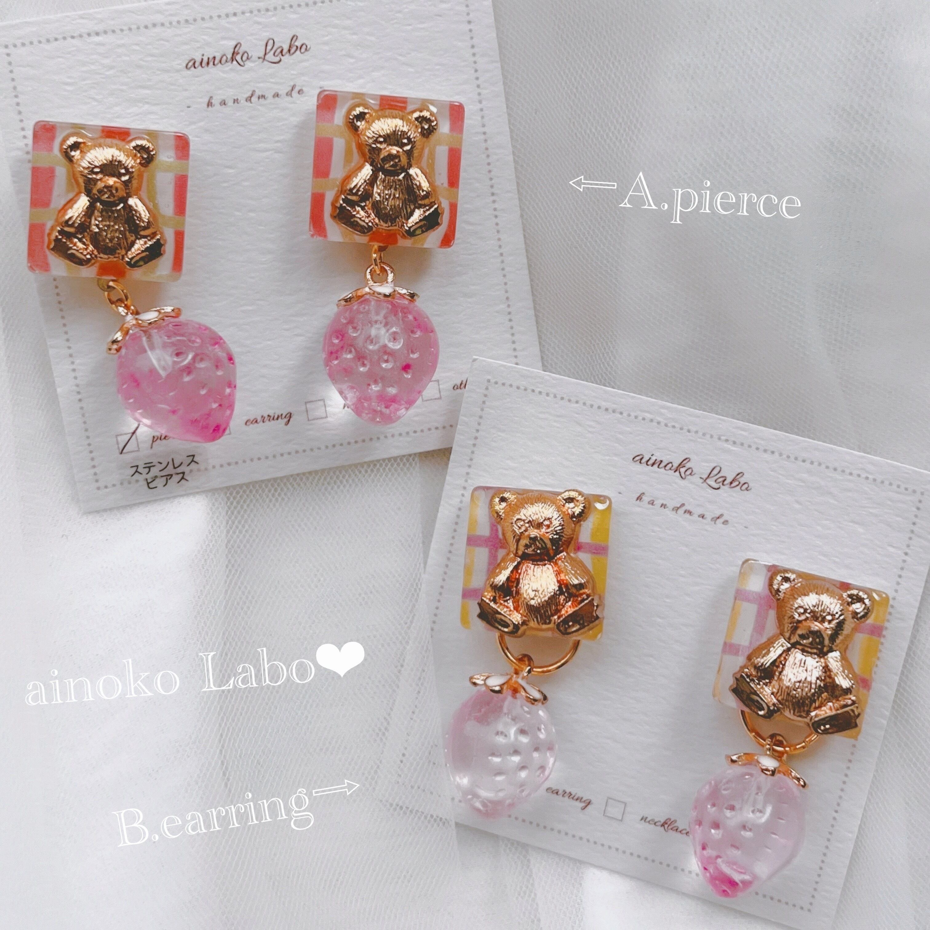 金具をA.ピアス or B.イヤリングよりお選びください❤︎