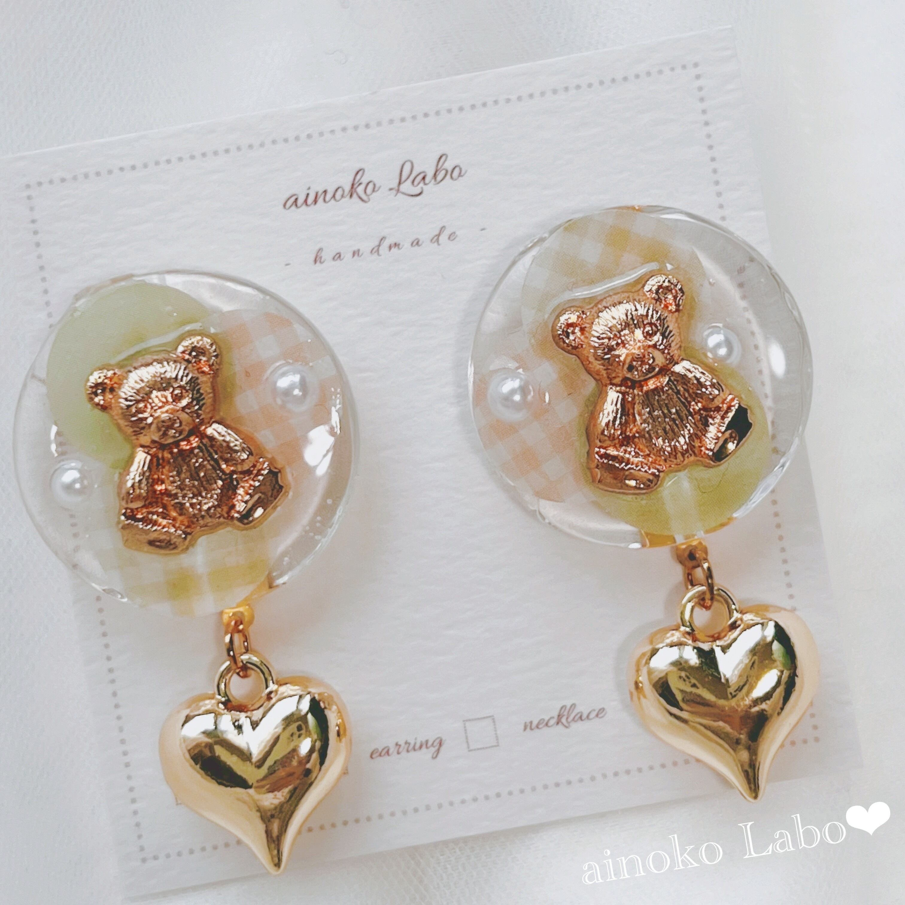 ✳︎ ギンガムチェック くまさん girly ピアス ✳︎