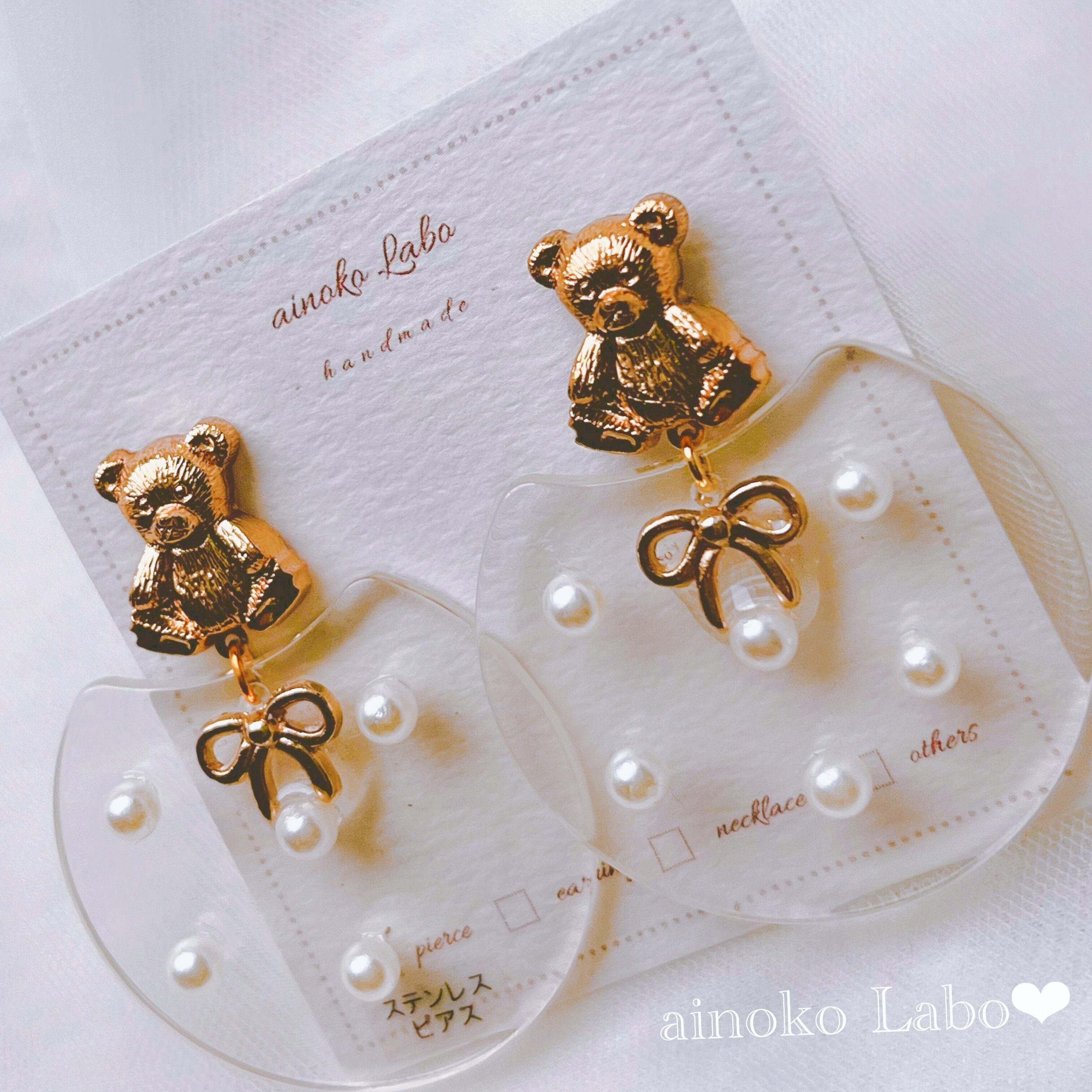 ✳︎ つぶつぶパール くまさん girly ピアス ✳︎