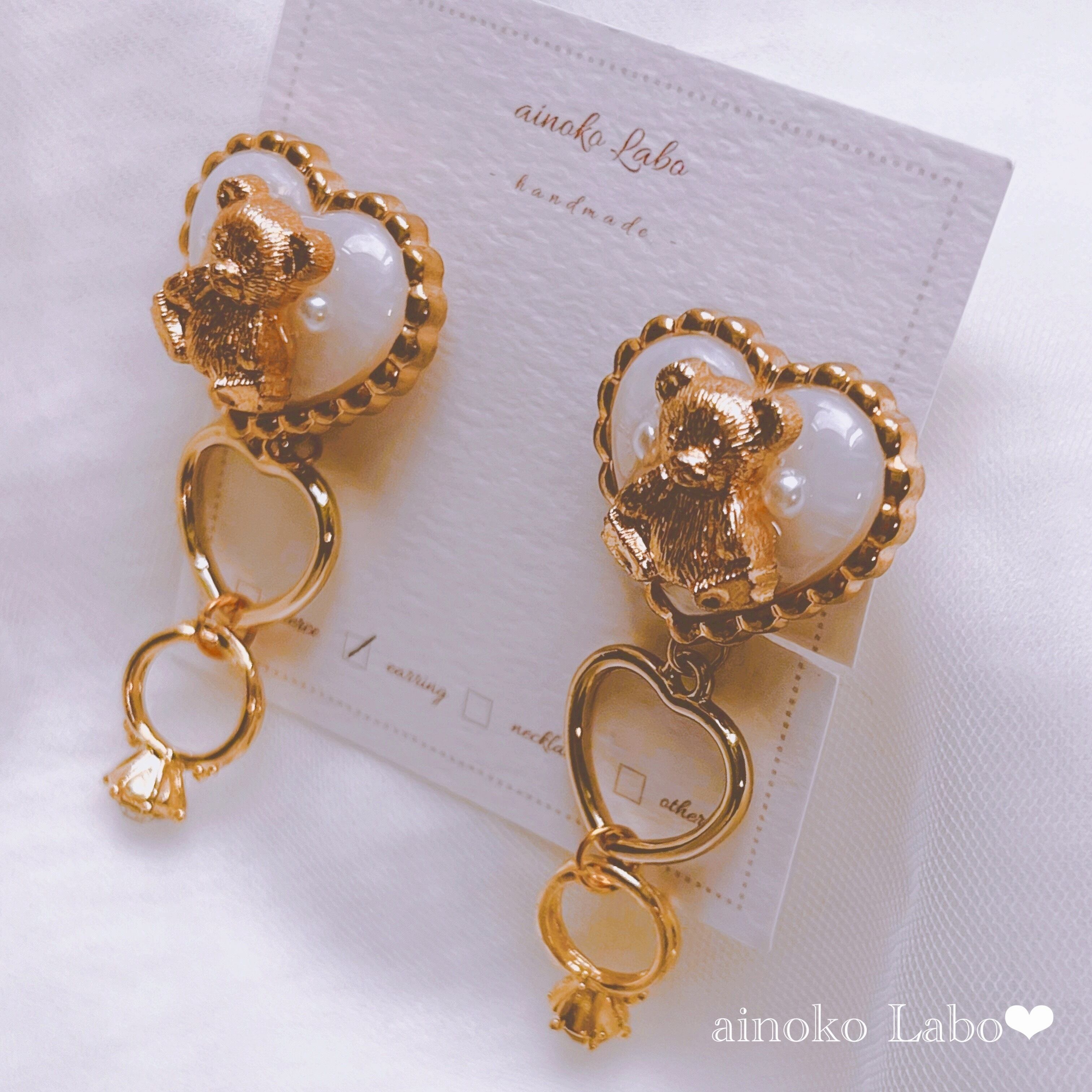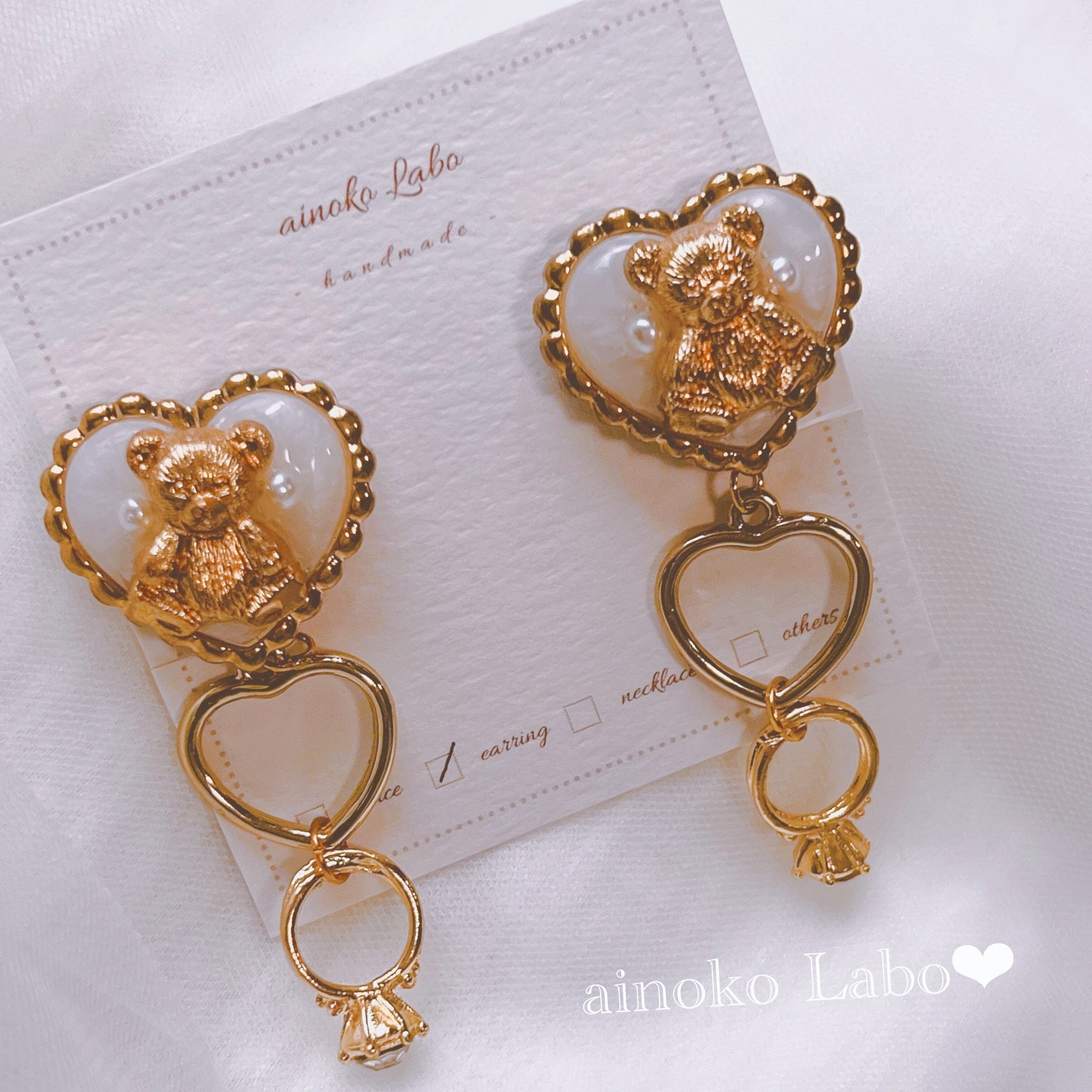✳︎ ハートと指輪 くまさん イヤリング ✳︎