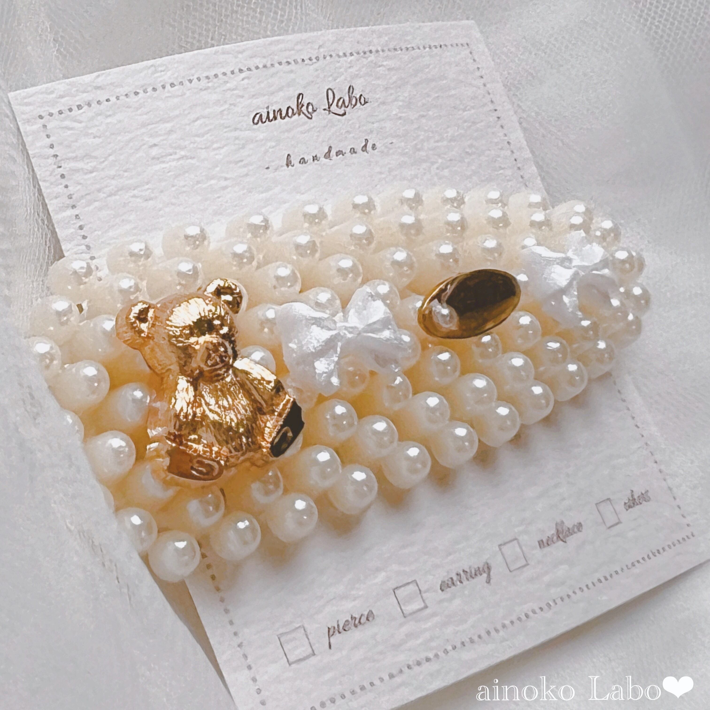 ✳︎ くまさんとパール Whiteリボン girlyぱっちんぴん ✳︎