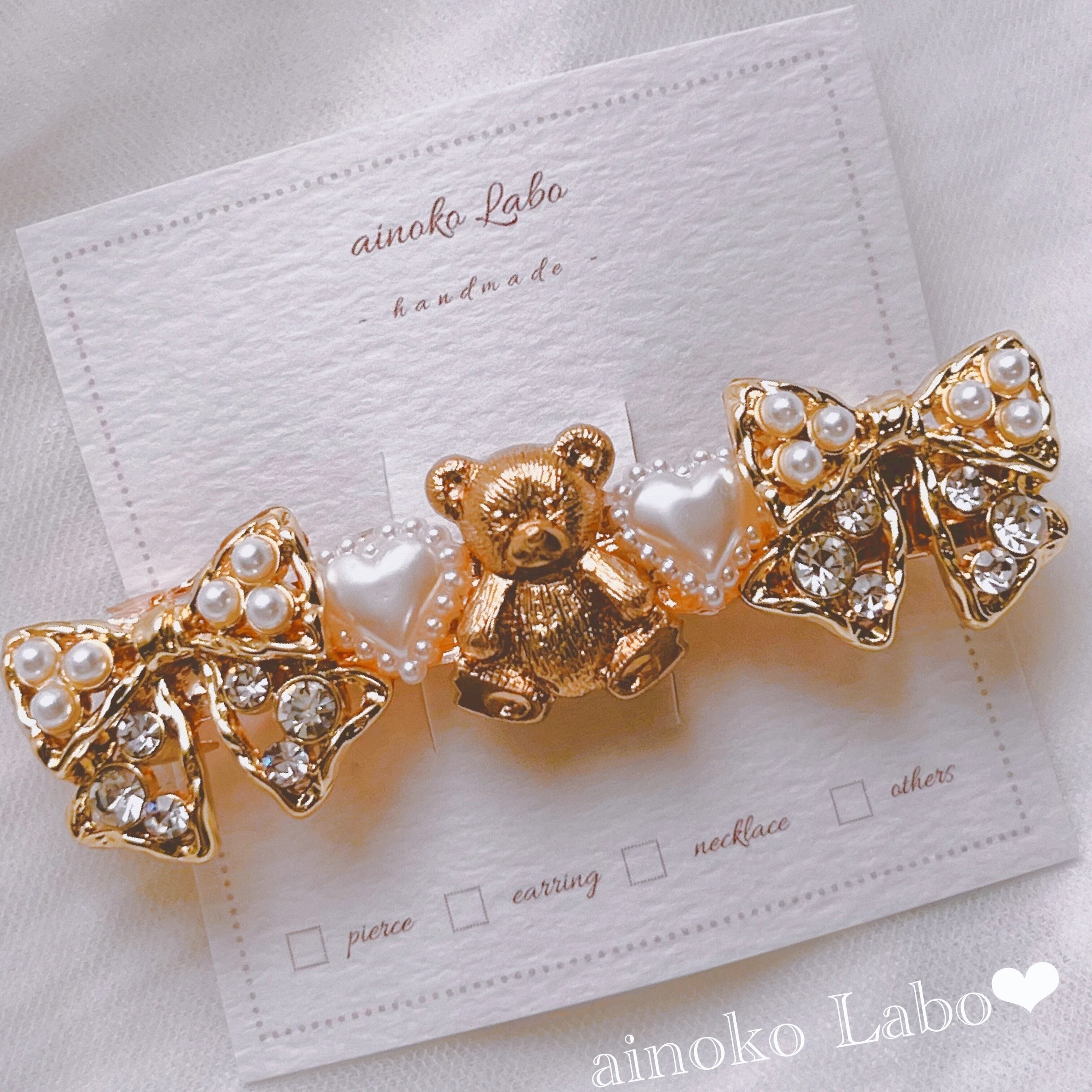 ✳︎ キラキラビジュー girlyリボン くまさん バレッタ ✳︎