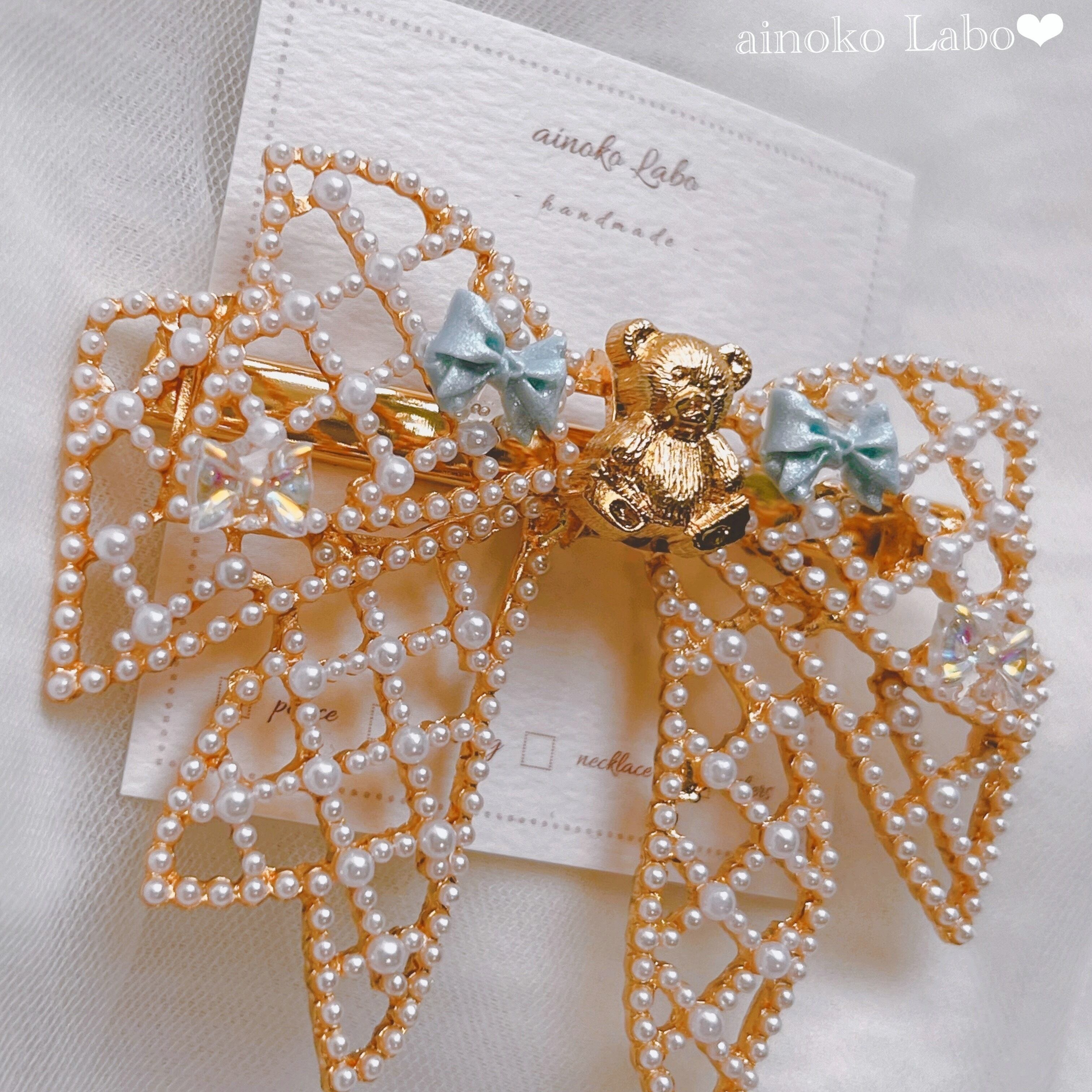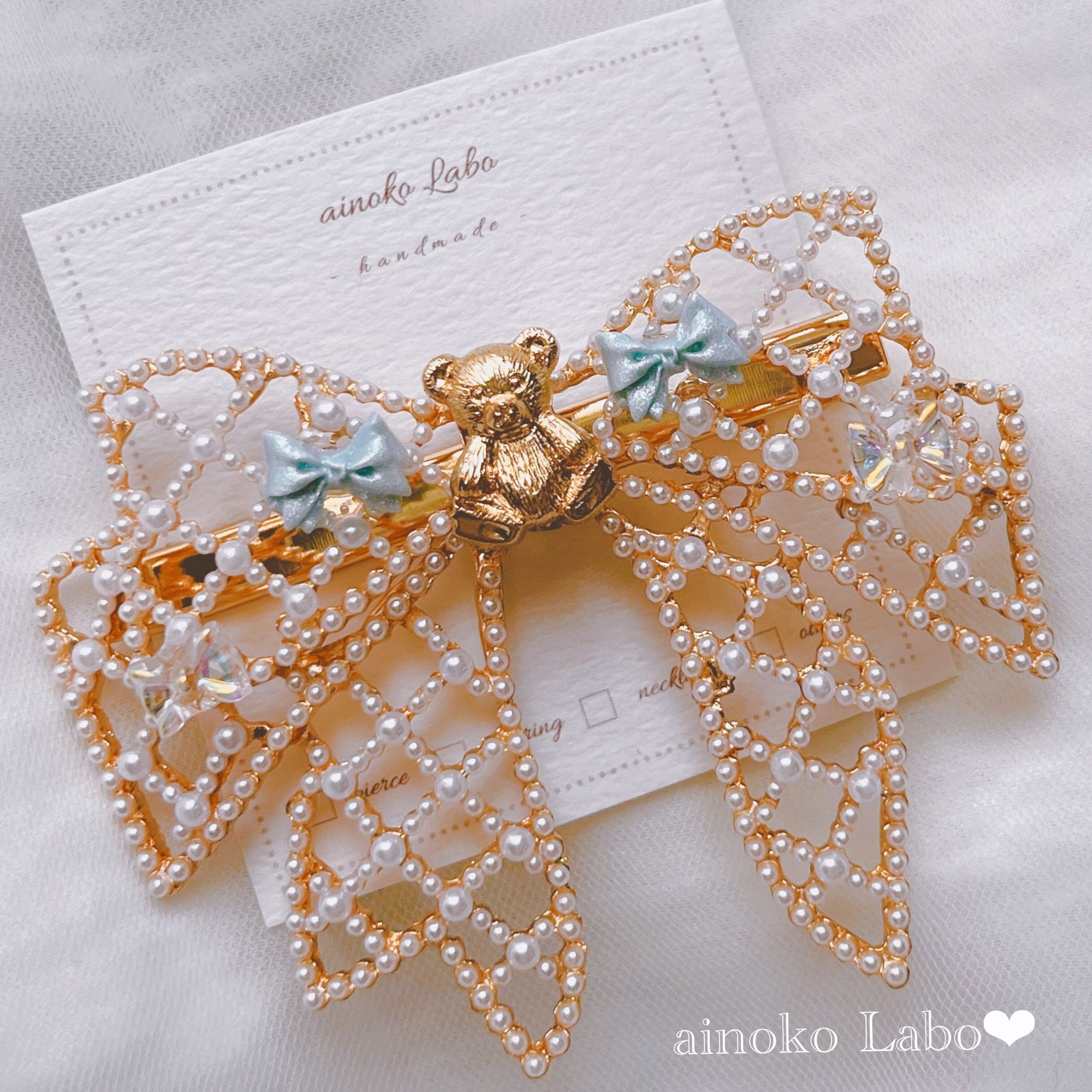 ✳︎ くまさんとパステルブルーbigリボン girlyヘアクリップ ✳︎