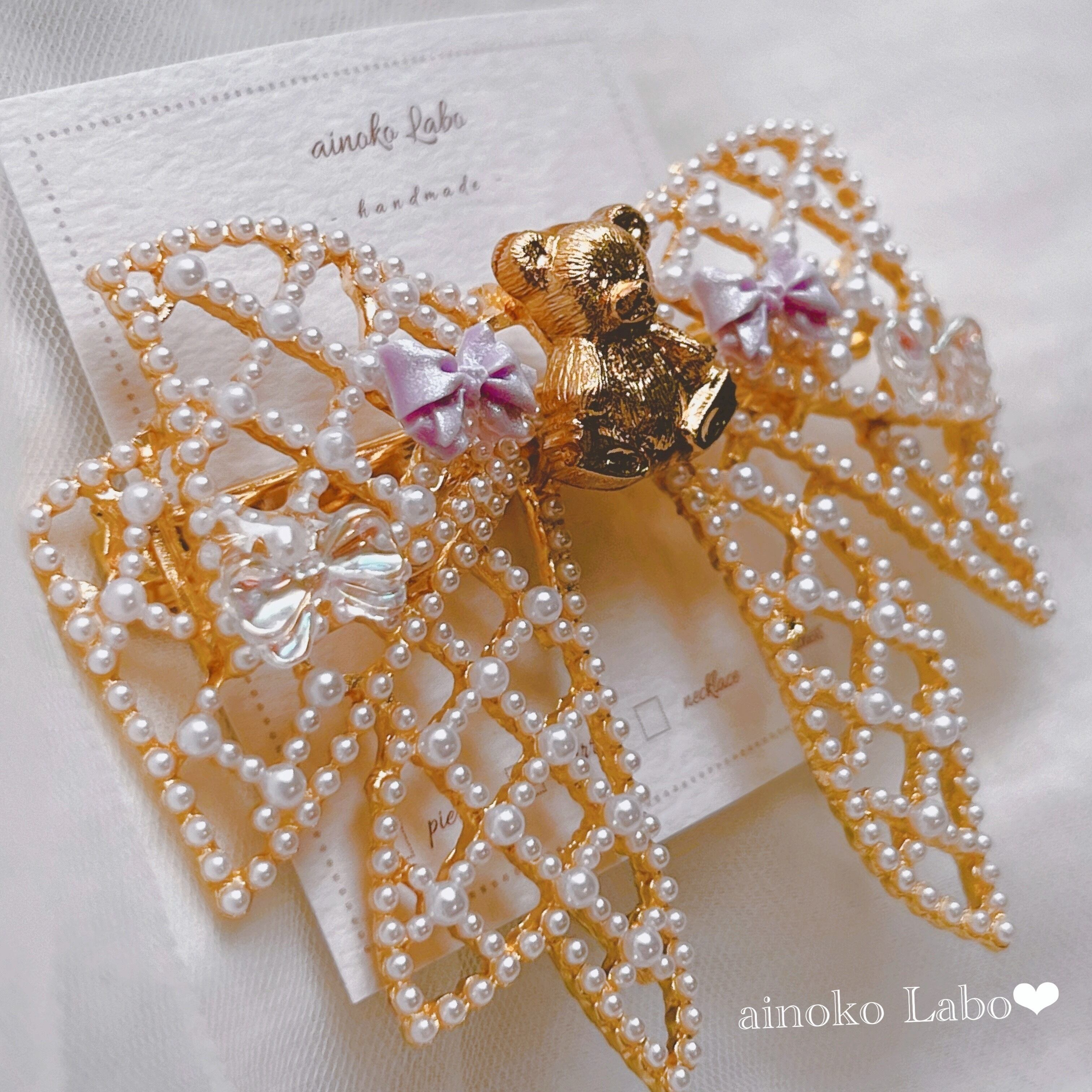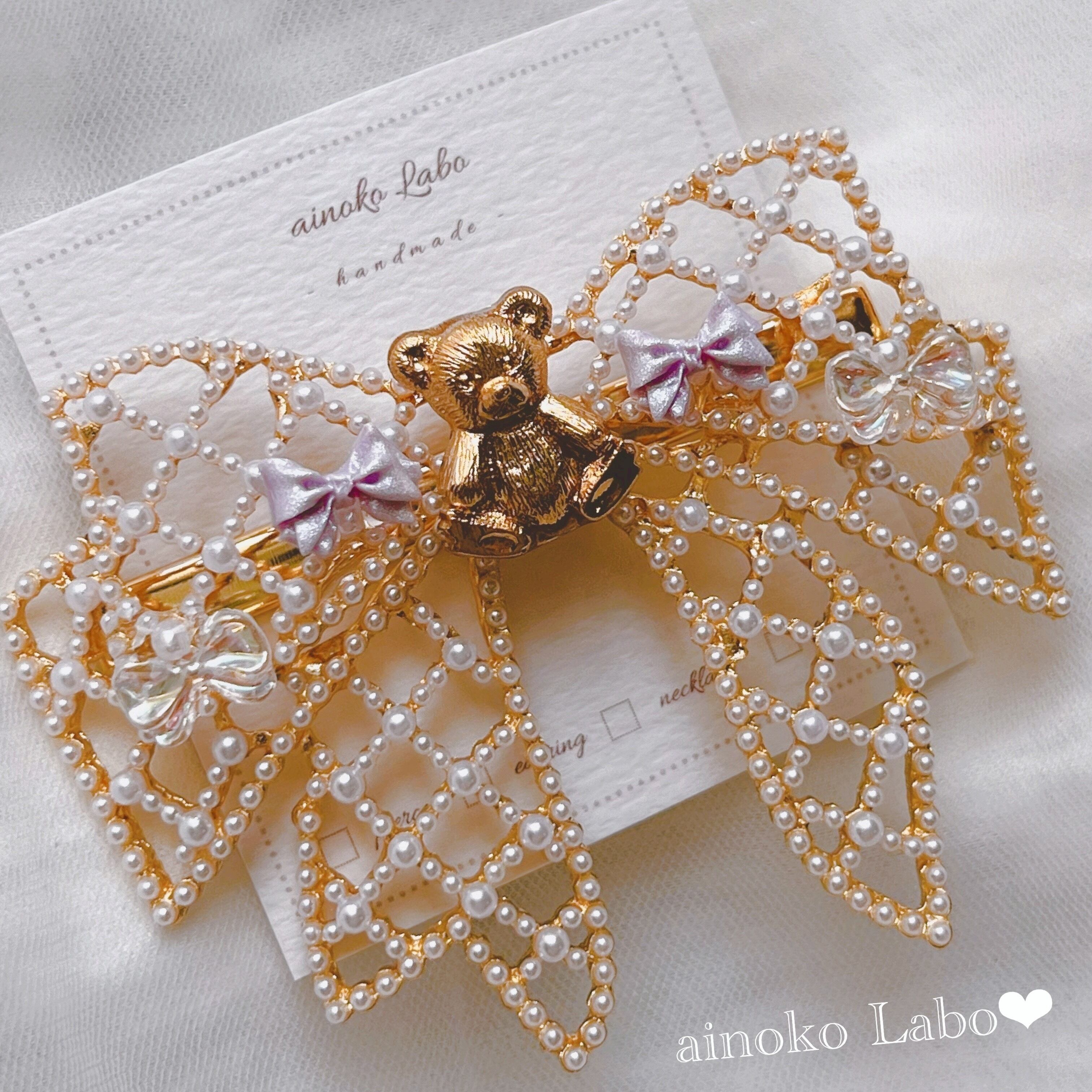 ✳︎ くまさんとパステルパープルbigリボン girlyヘアクリップ ✳︎