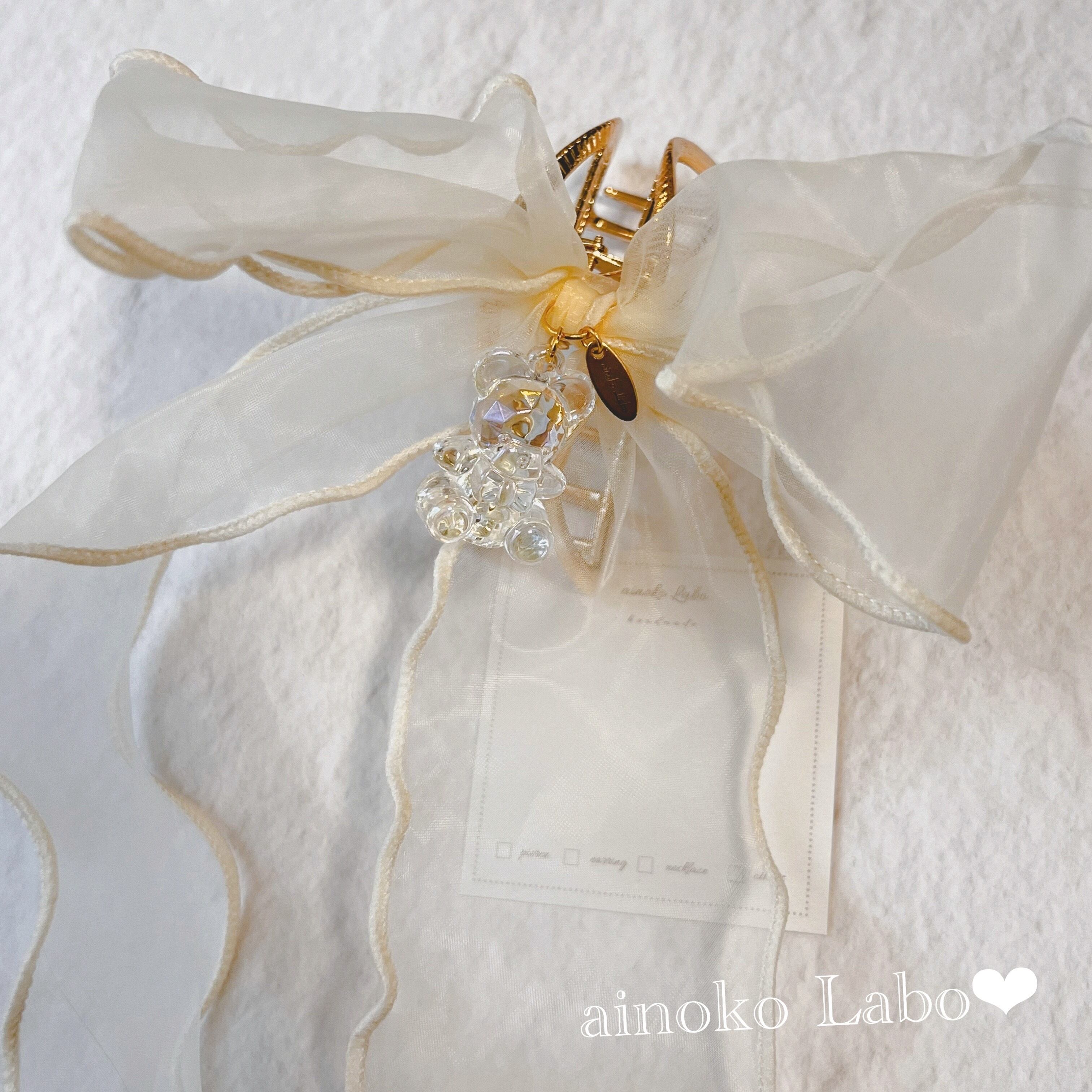❤︎ オーロラくまさんとホワイト ribbon girlyヘアバンズ ❤︎