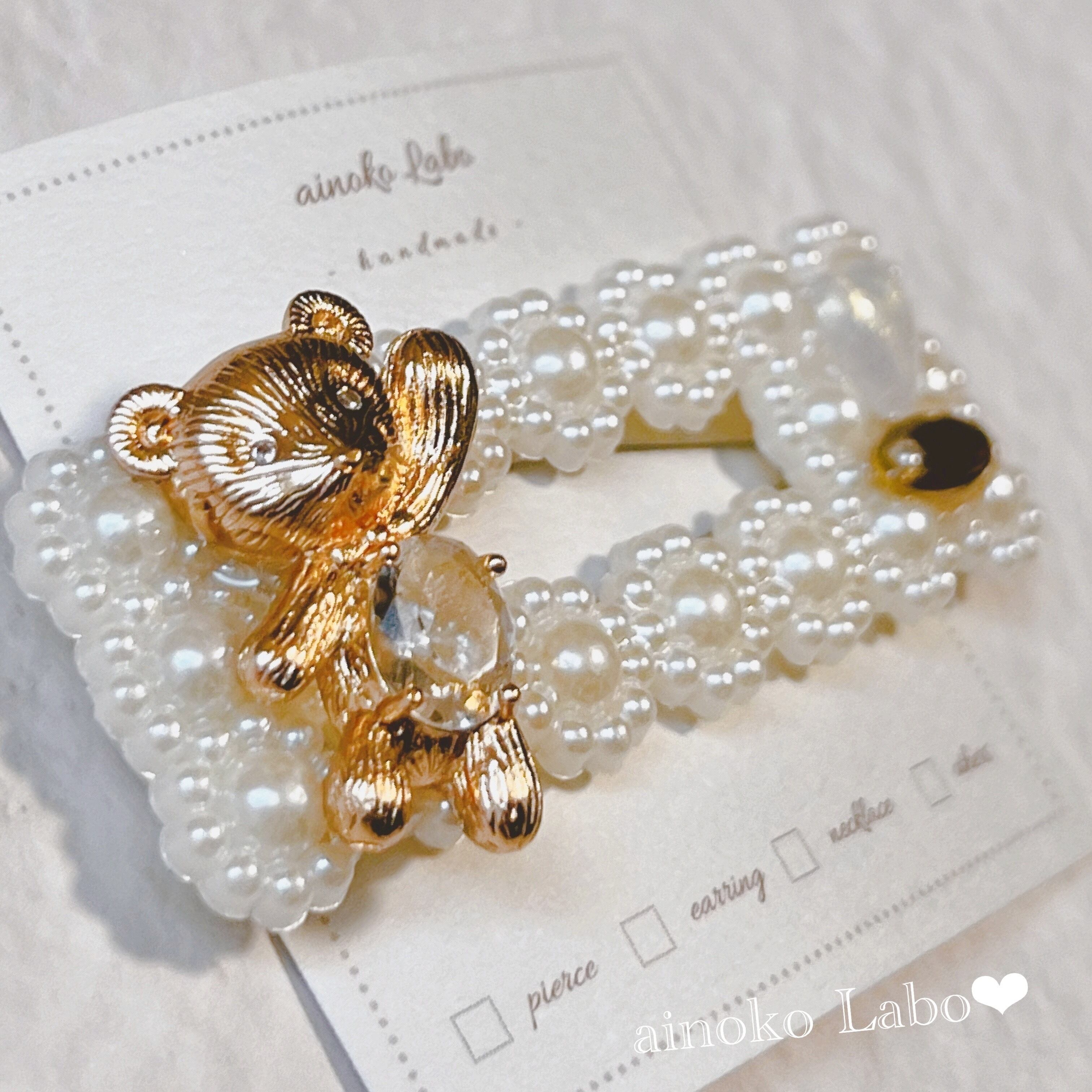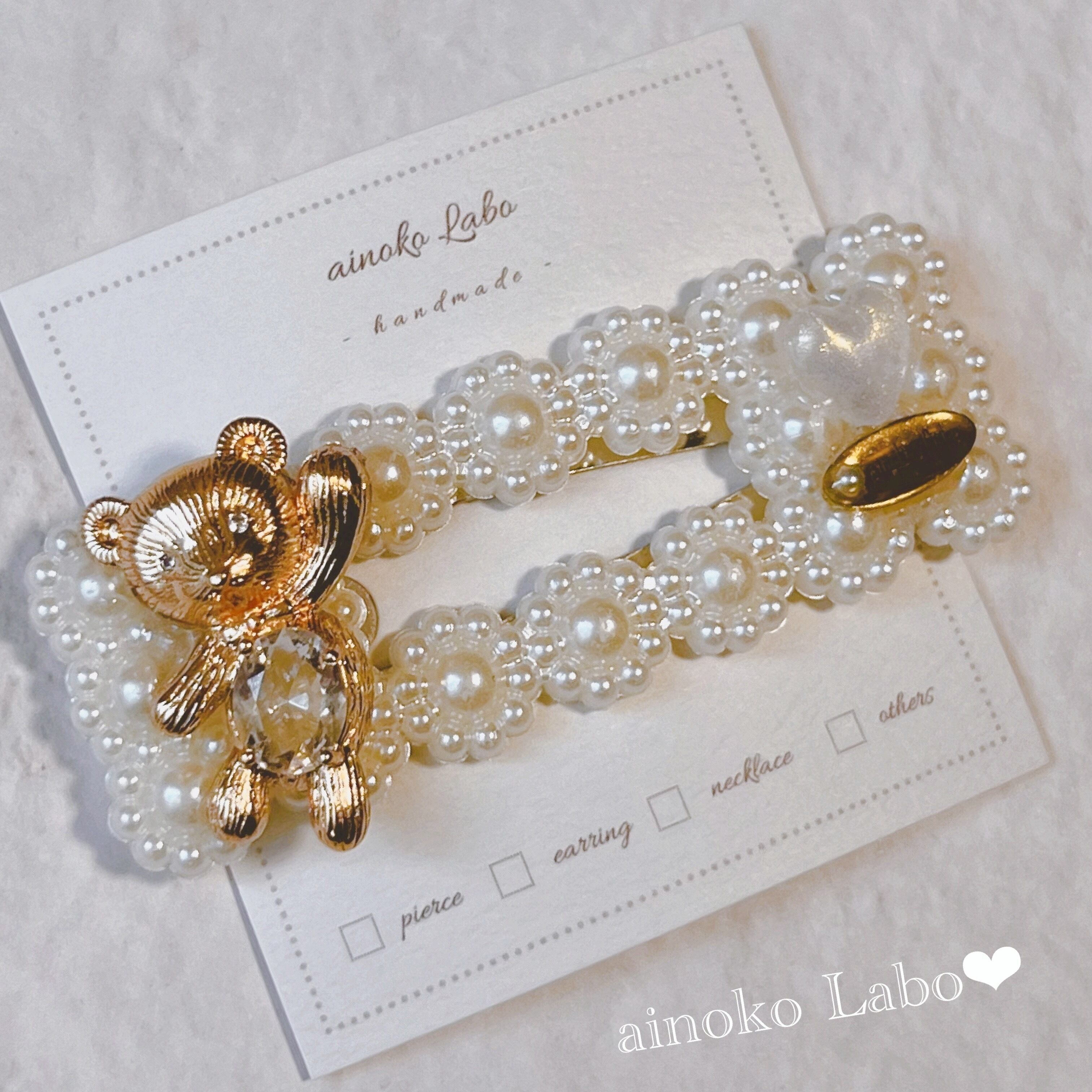 ❤︎ キラキラくまさんと ラメハート girlyぱっちんぴん ❤︎