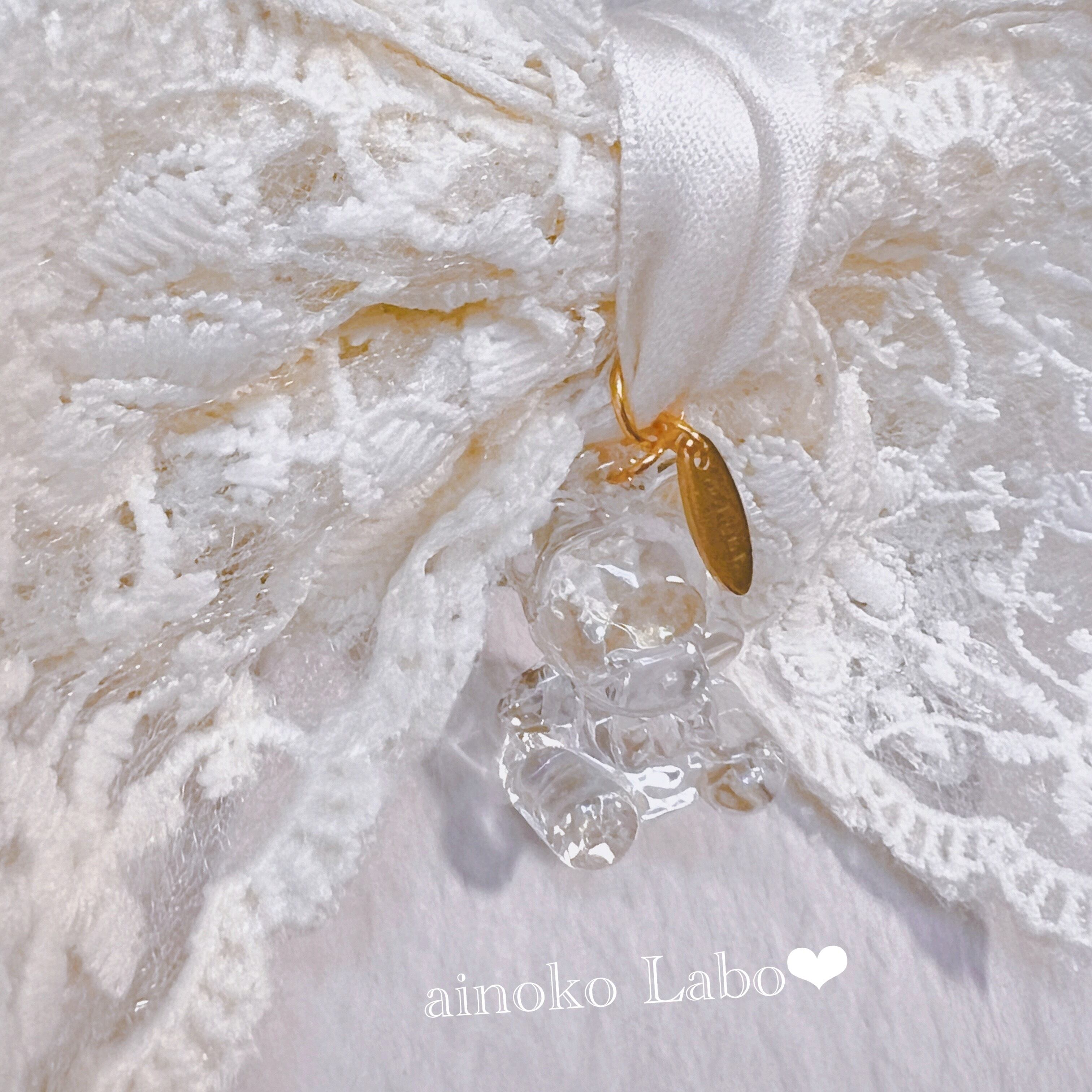 ❤︎ オーロラくまさんとホワイトレース ribbon ヘアクリップ ❤︎