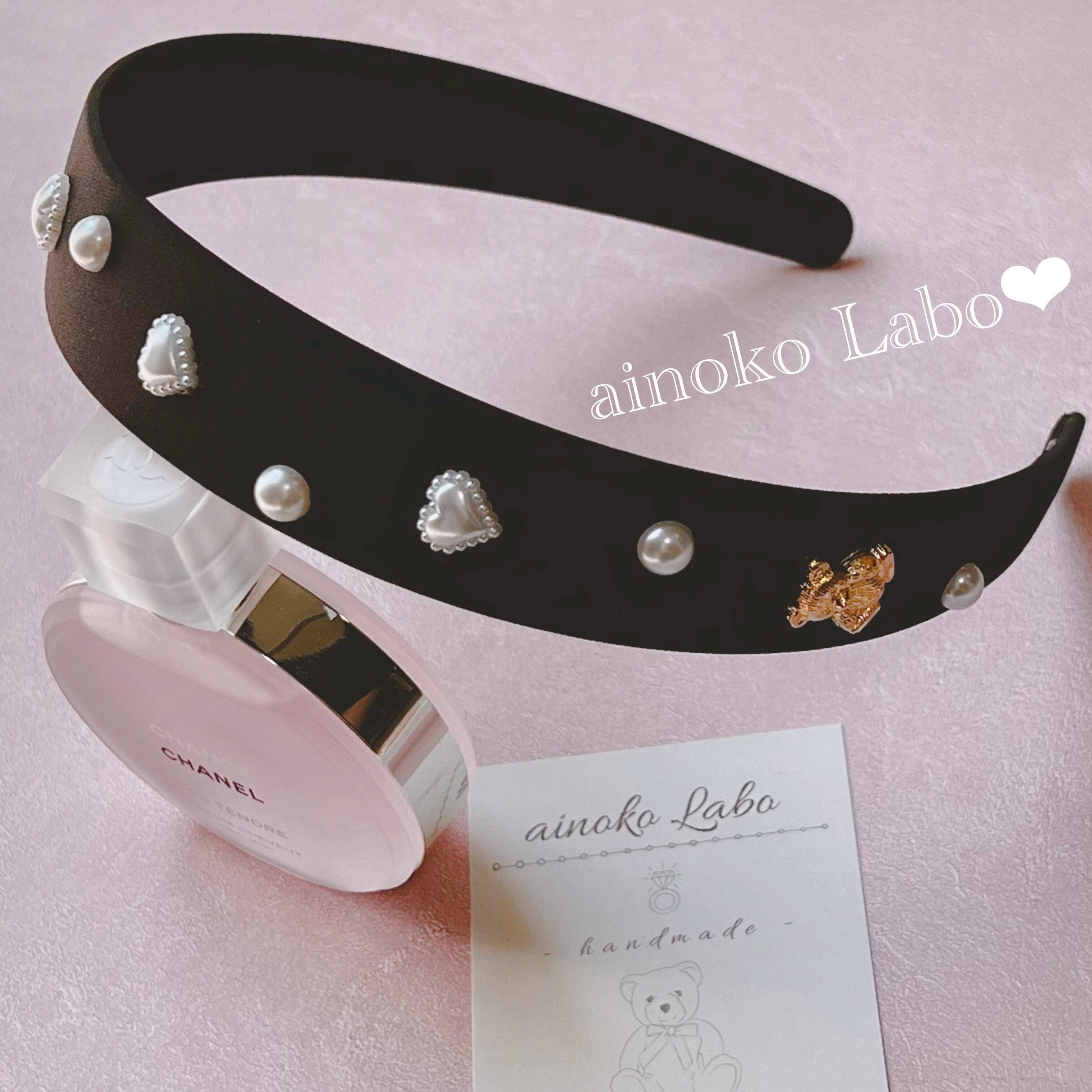 ❤︎ くまさんとハートパール girlyカチューシャblack ❤︎
