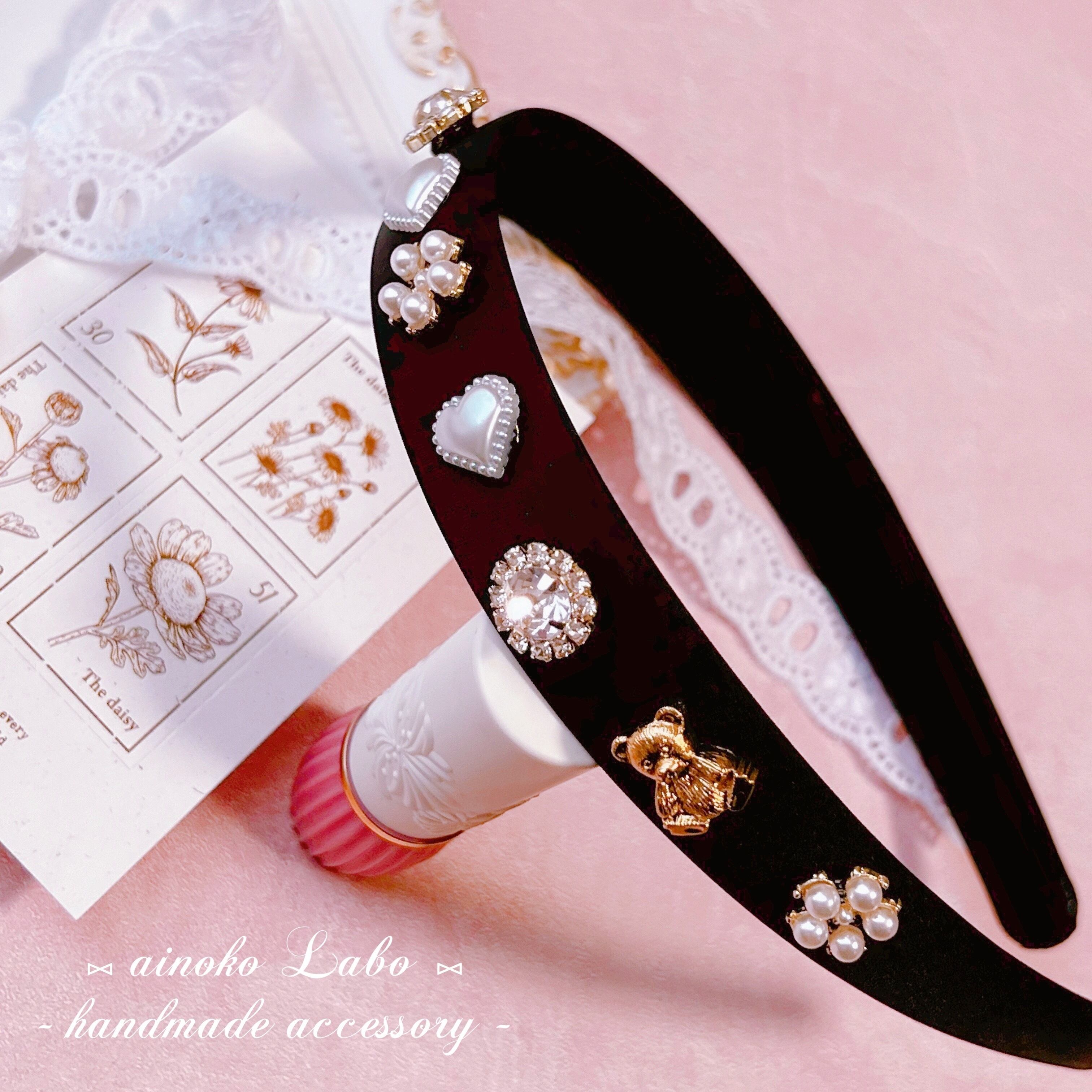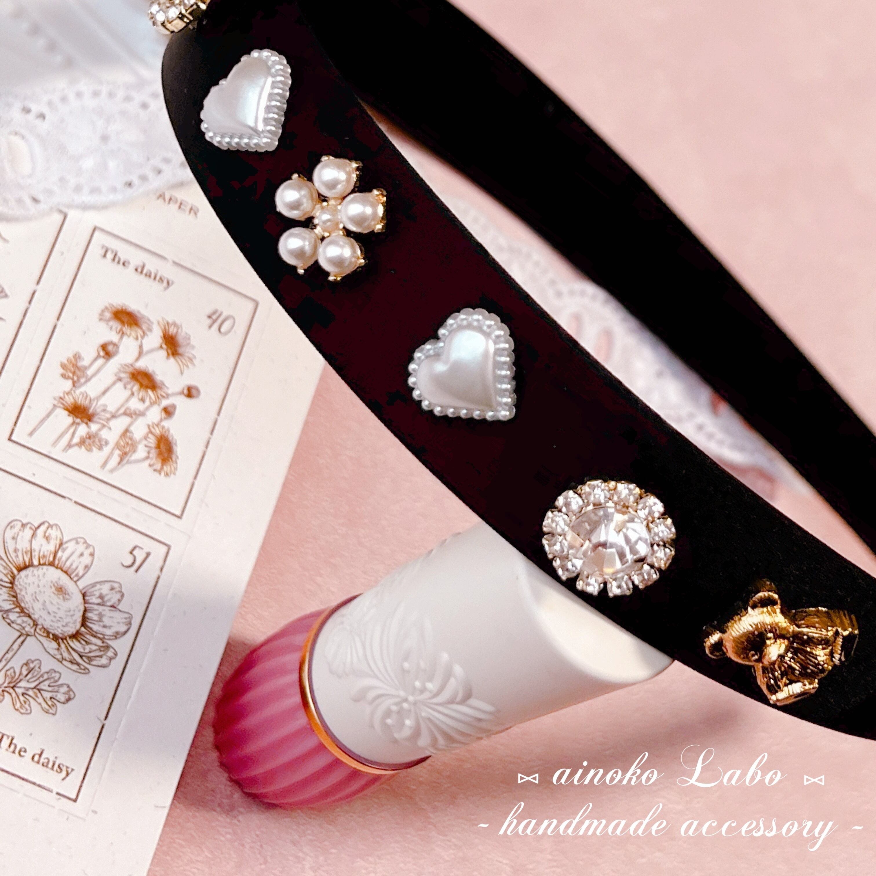 ❤︎ くまさんとビジュー girlyカチューシャblack ❤︎