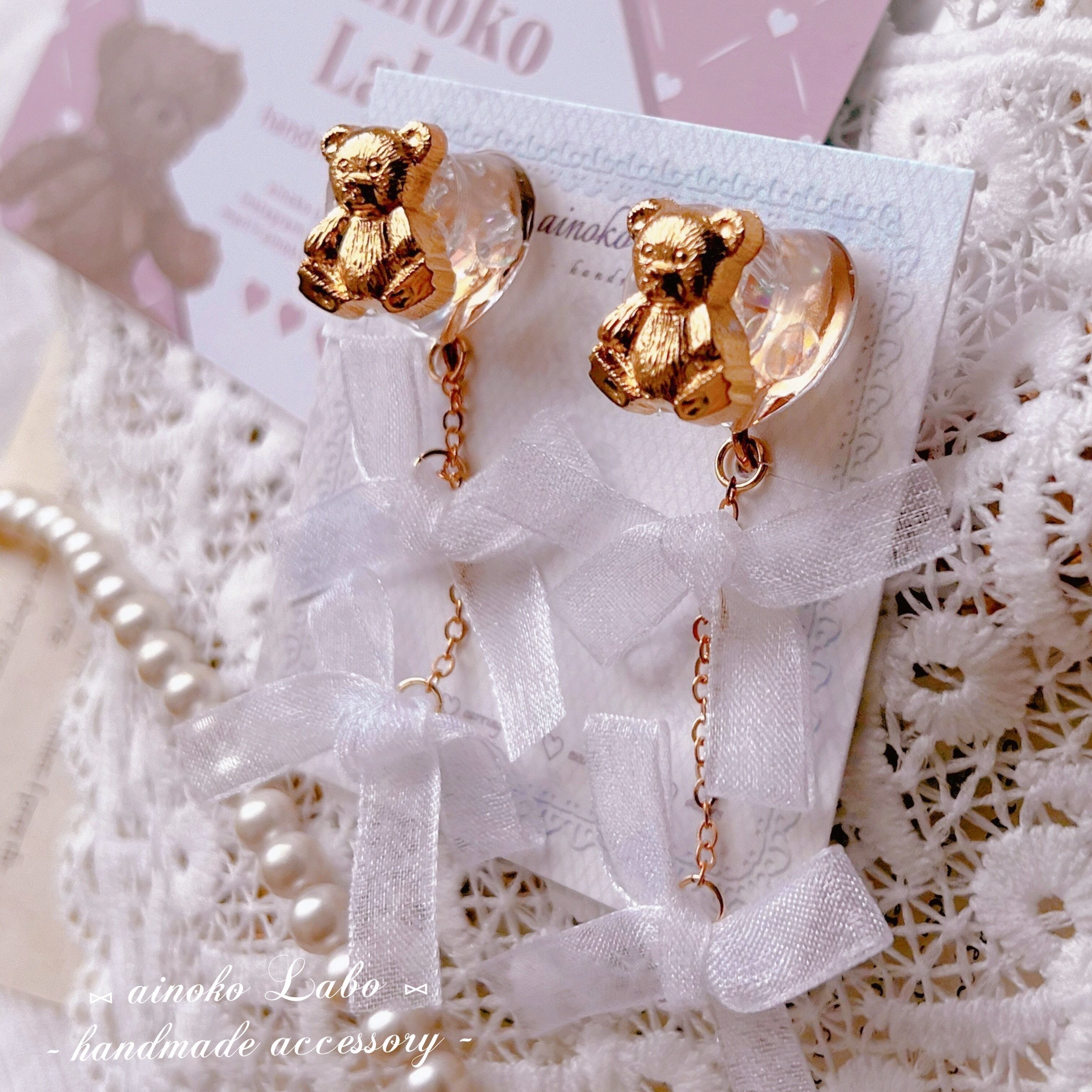 ❤︎ feminine ribbon bear earring ❤︎